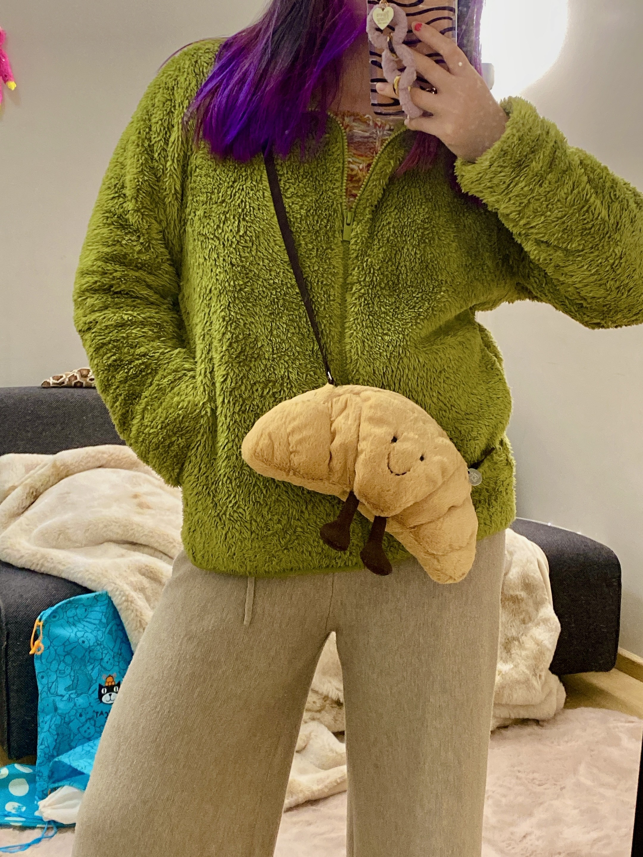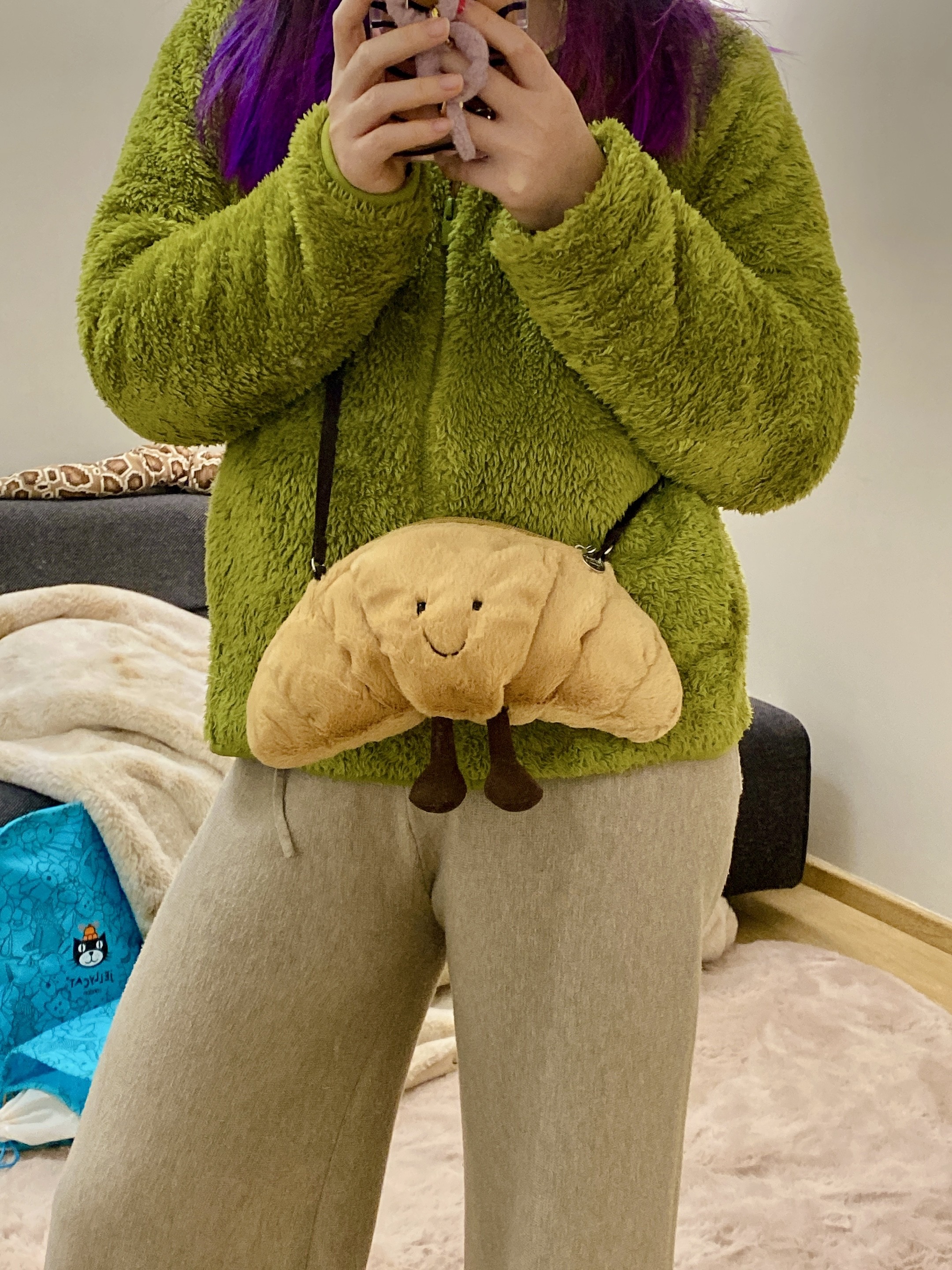 开会偶然打开jellycat发现网球有货!赶紧买了给朋友当作生日礼物,又给自己买了个可颂包凑包邮。嘿嘿!