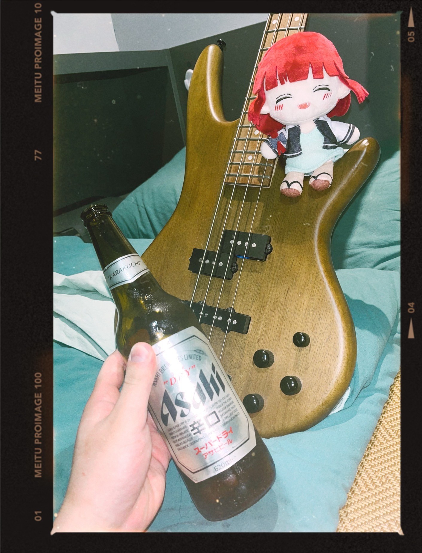 #碎碎念上半年预购的广井菊里娃娃月初到了。拍了做作的照片。我也要成为酒鬼贝斯手了……吗?