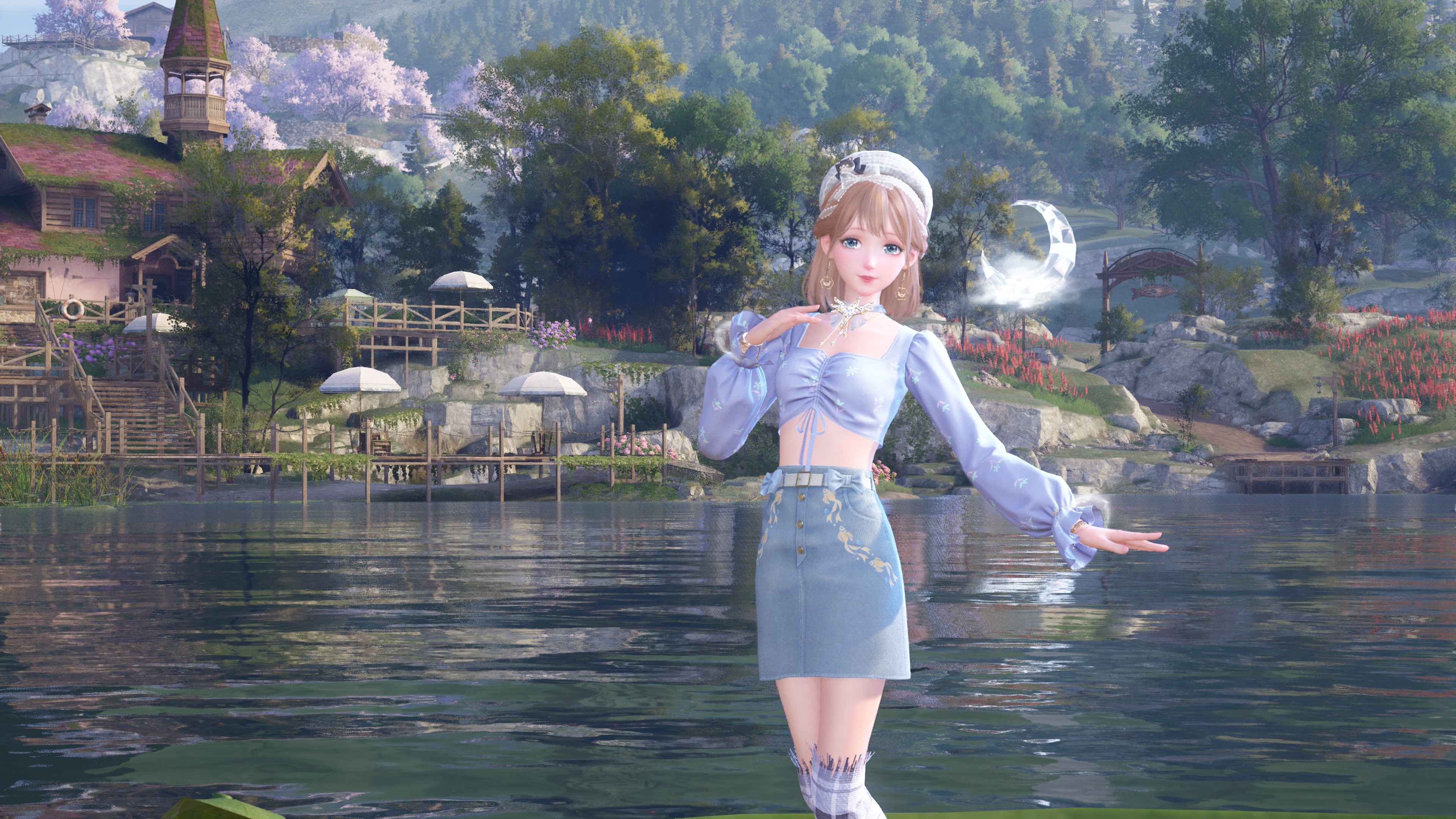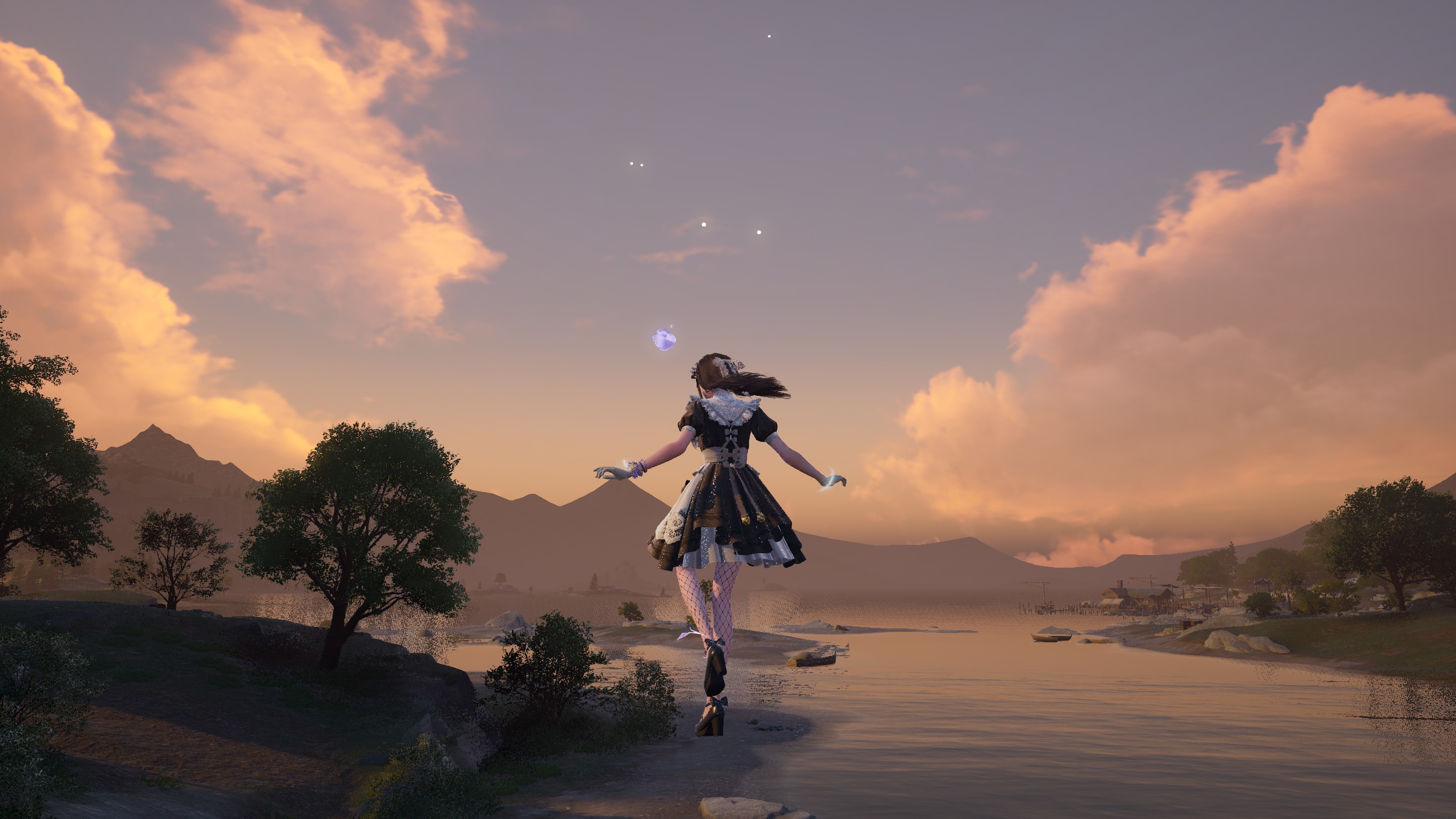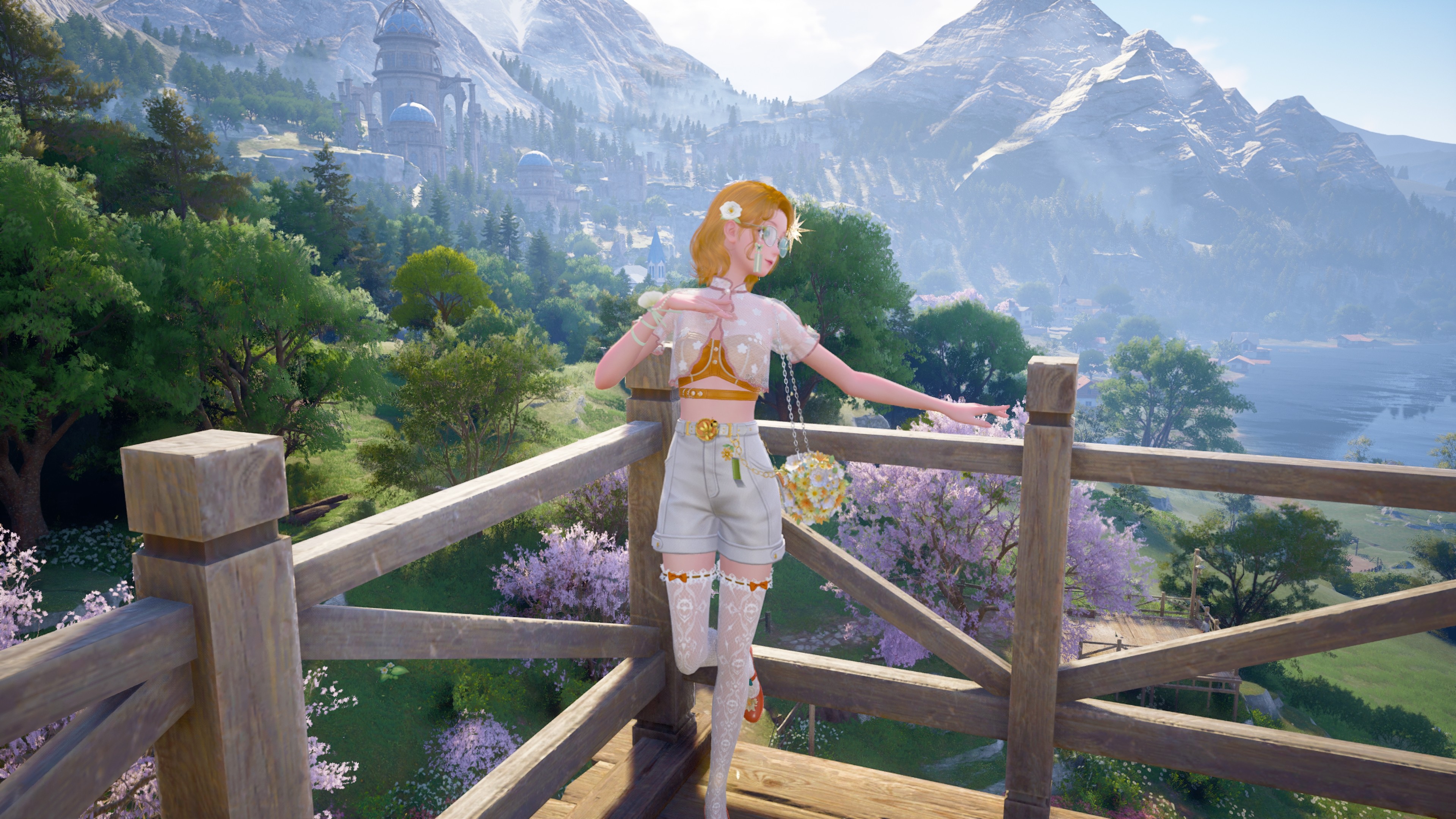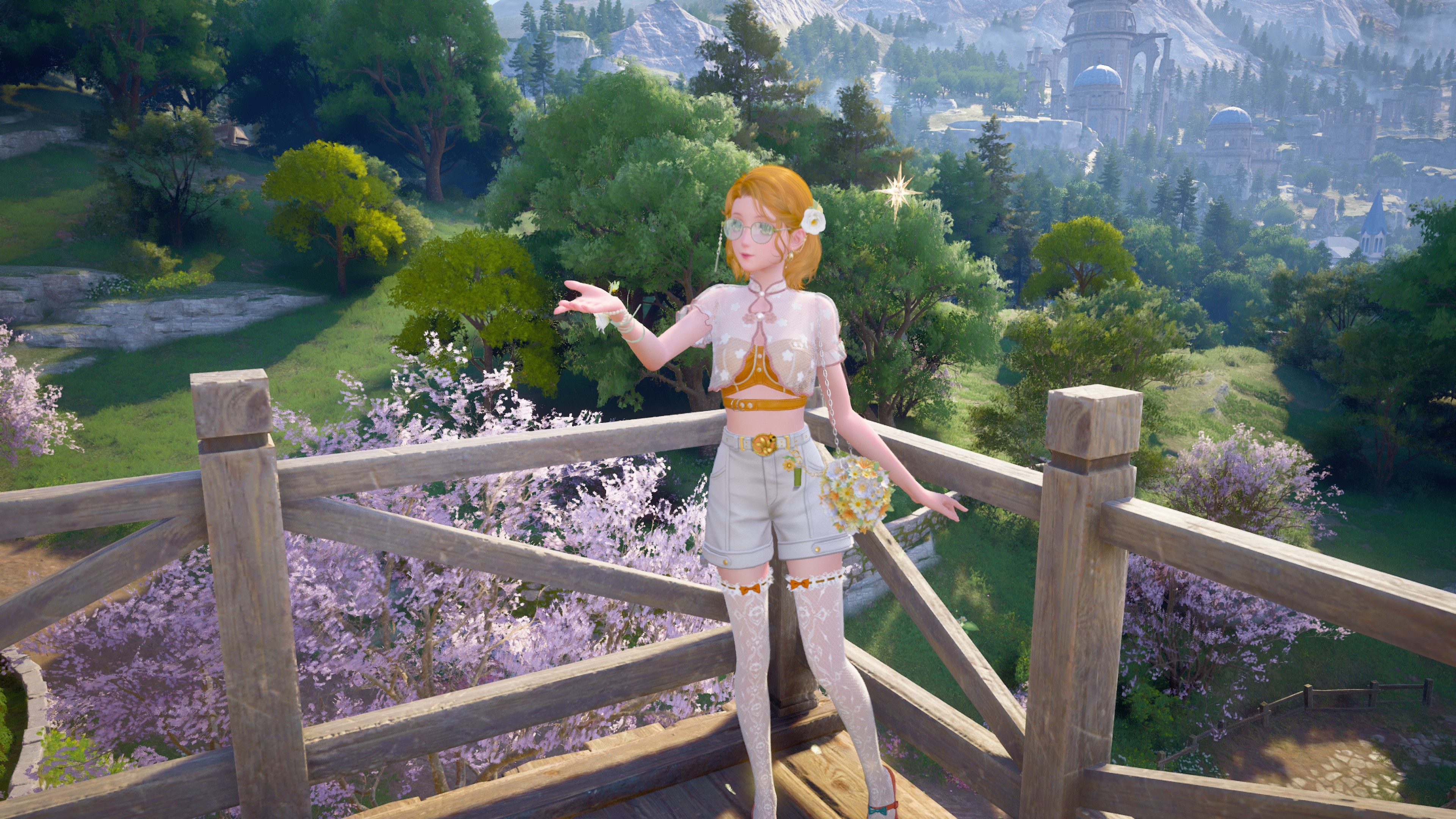 游戏穿模了,可是穿模得好美,土的材质载入成了水。道路变成漫延的水渠,万物浮在明晃晃的虚空中,陆地化为汪洋,草原进入雨季,鲜黄毛茛长在水汪里。现实翻转,再现少女时荒诞的幻梦,记忆已经泛黄,却无边烂漫。鄙人不语,只是一味拍照。