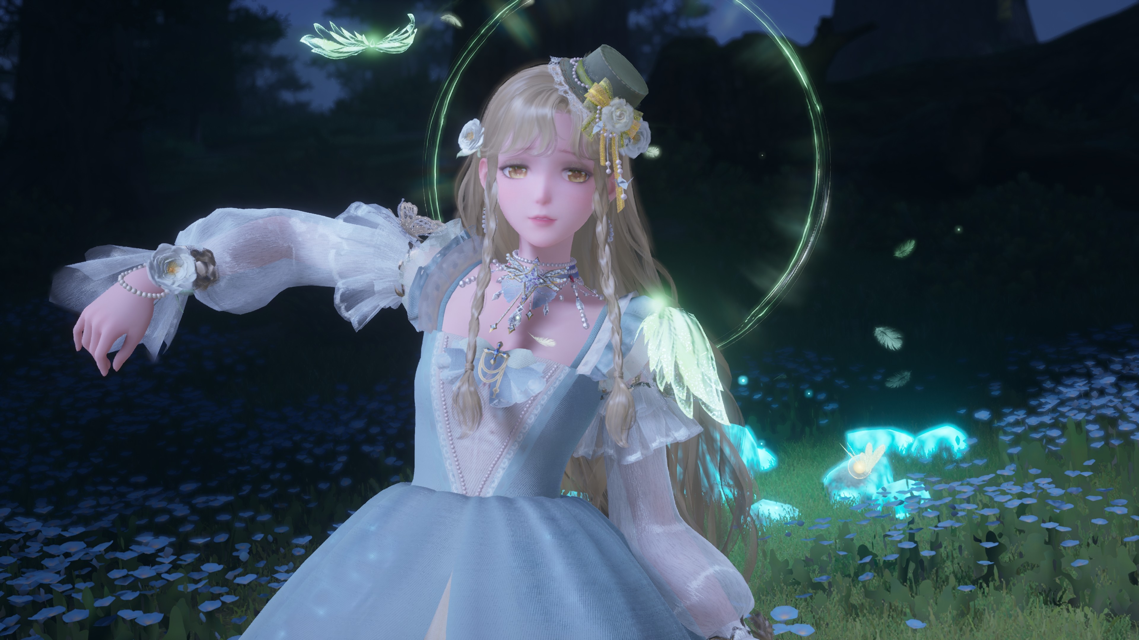 哈哈,宴席白牛被我染了之后当然是疯狂的拍照了。新剧情氛围蛮好的,失落的女王行宫,但画面太黑了感觉自己是瞎子。才刚刚试用野餐垫,可以邀请好多小动物,因为她是公主!人人都诟病这个58w裙子,我觉得真的很美,质感好棒,轻盈绸缎,宝宝你是茉莉奶芙