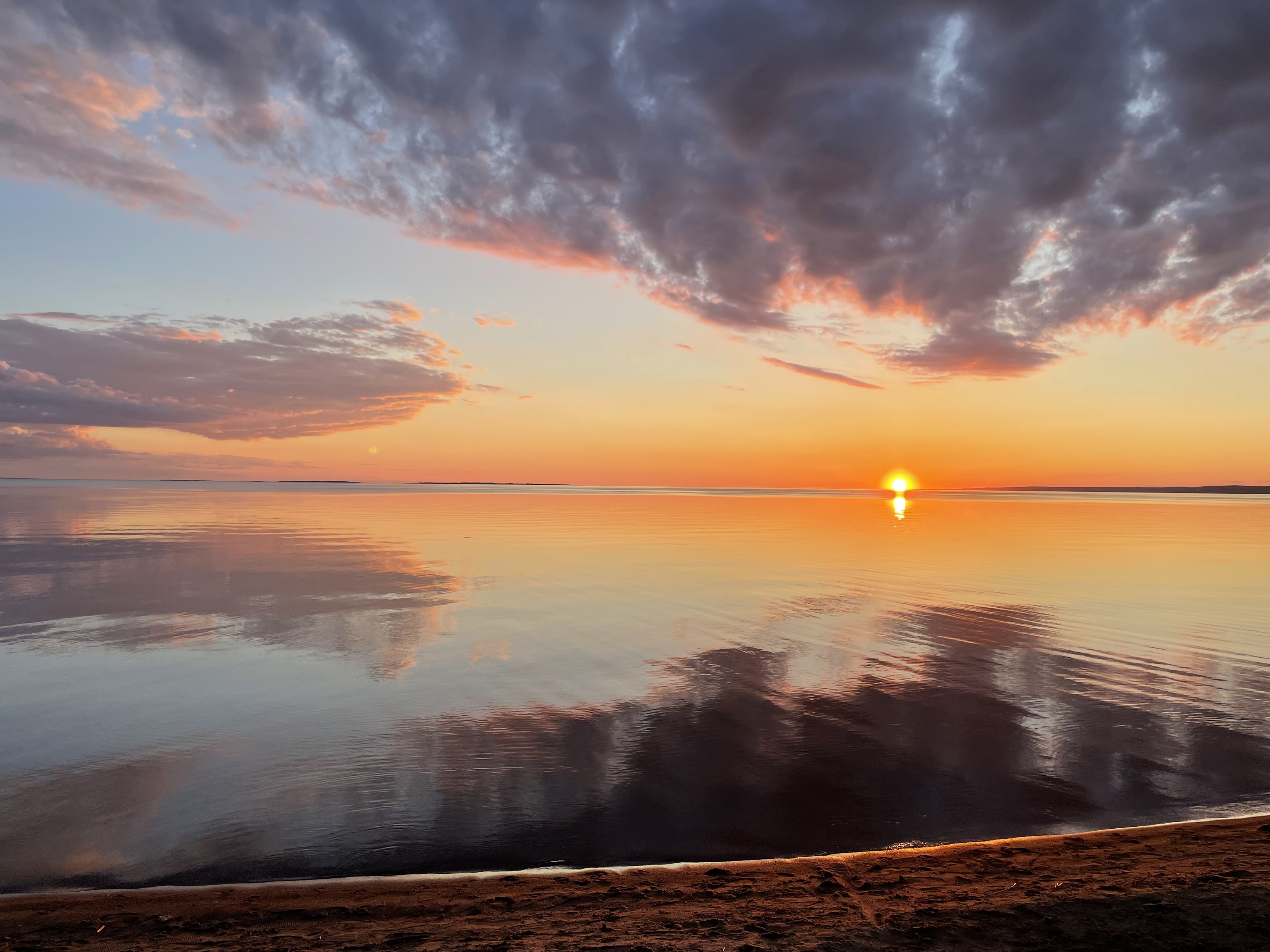 晚上住的地方旁边有个小湖,吃完饭趁着还有太阳往湖边走一走,没想到就撞见了水上日落。我这辈子应该是第一次见到这么平静的湖面和如此的日落,看到太阳沉下去漫天光辉的时刻非常感动,泪水都涌了出来。大自然太美了。