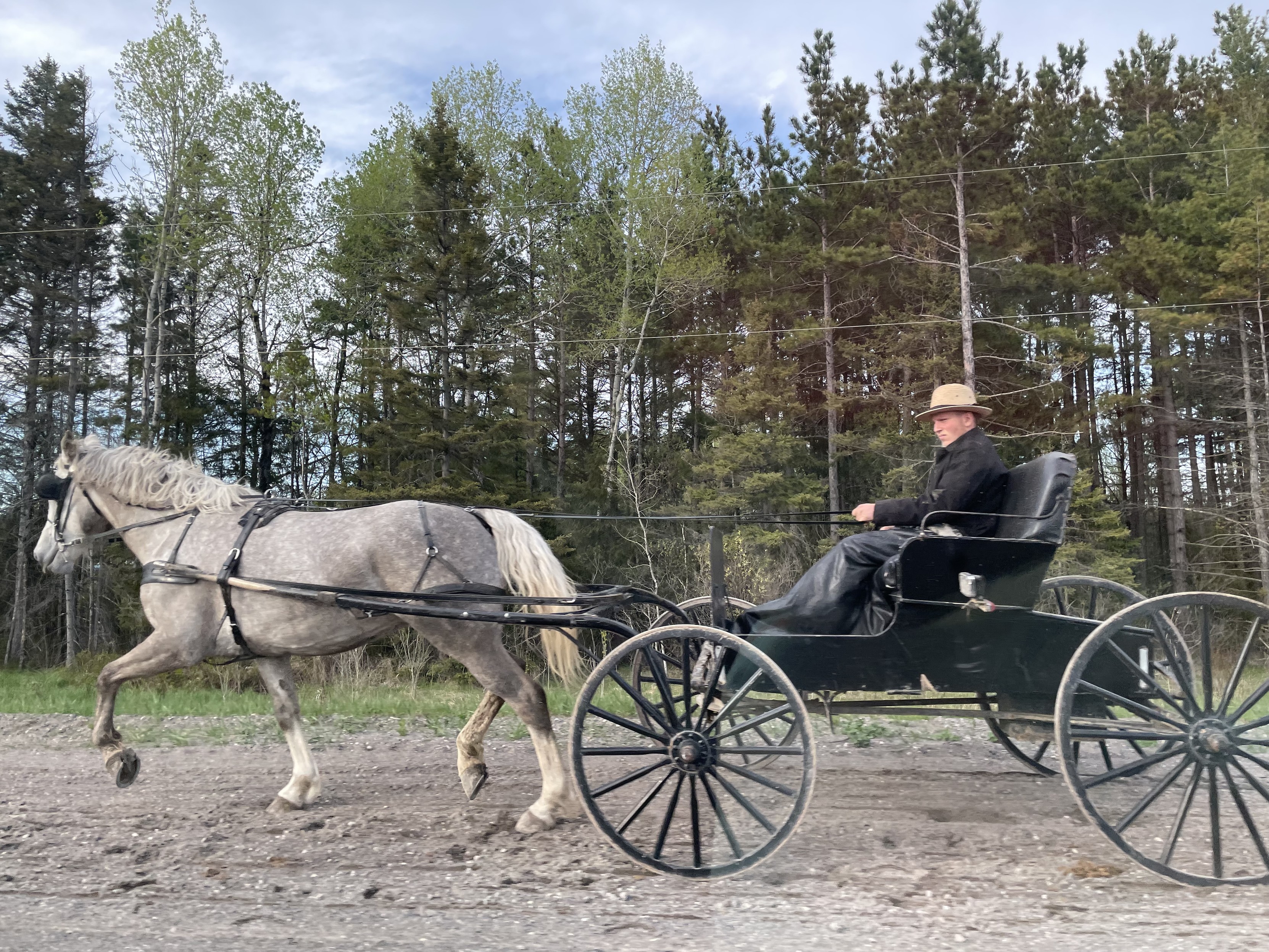幸运的是走了很长的一截公路路标上都画了马车,没想到真的见到好几辆马车。