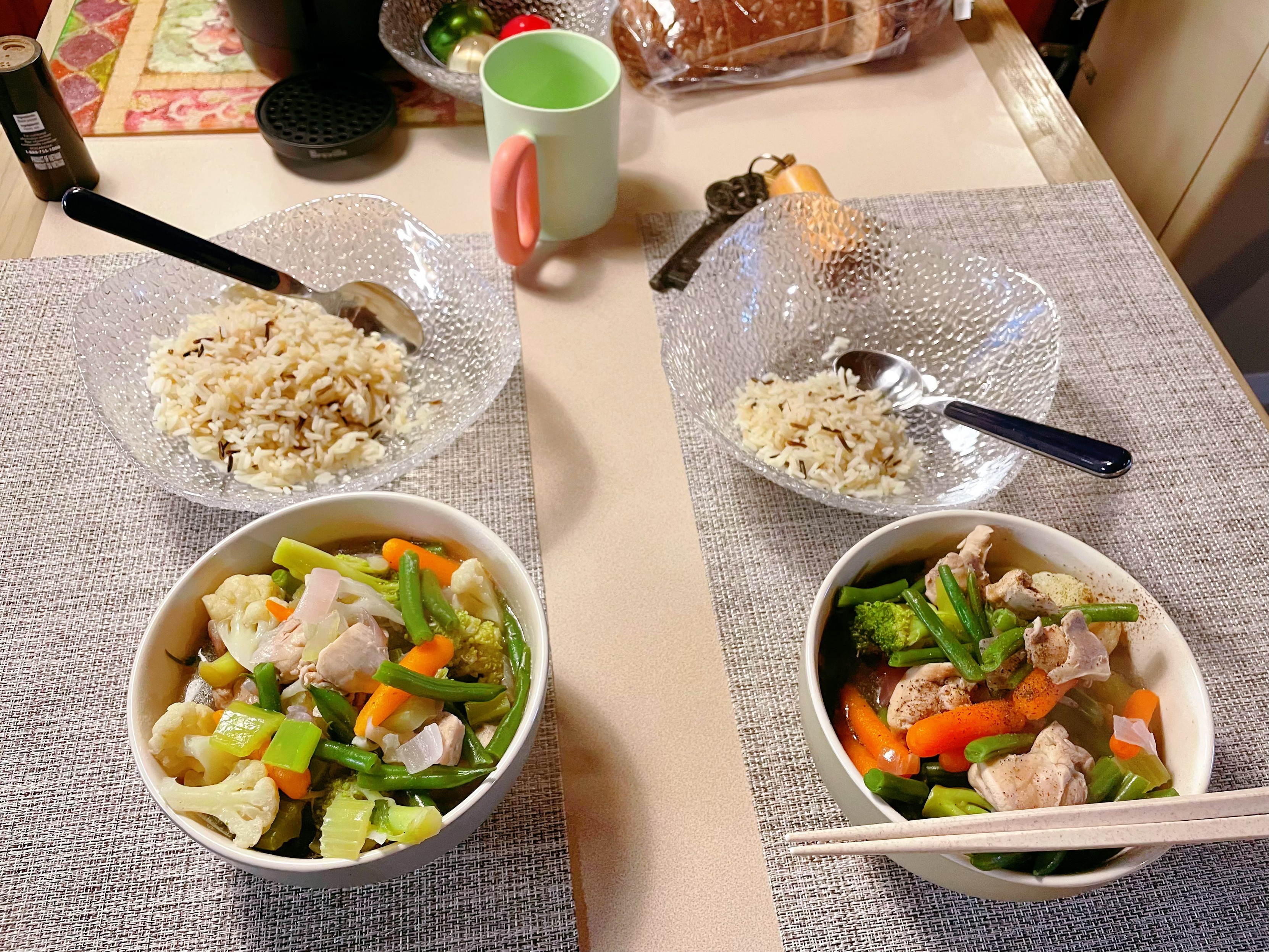今天在山里住小木屋,本来如果晴天的话可能能看到漫天繁星和一部分银河,奈何雨天多云,只好作罢。小木屋带个简单厨房,我做了鸡肉炖菜和蒸米饭。因为吃了两天面包东亚精神大爆发,今天觉得再不吃到米饭要死了。管木屋老板娘要了个大点的有盖子的锅,直接用瓷碗蒸。人生第一次蒸米饭大获成功,十分劲道粒粒分明。厨房只给了盐和黑胡椒,又打发男人出去管老板娘要了一点点cream。所以就这三样调味品炖了一锅疏菜丰富的鸡腿肉炖菜,热热乎乎香香甜甜吃得十分舒服。