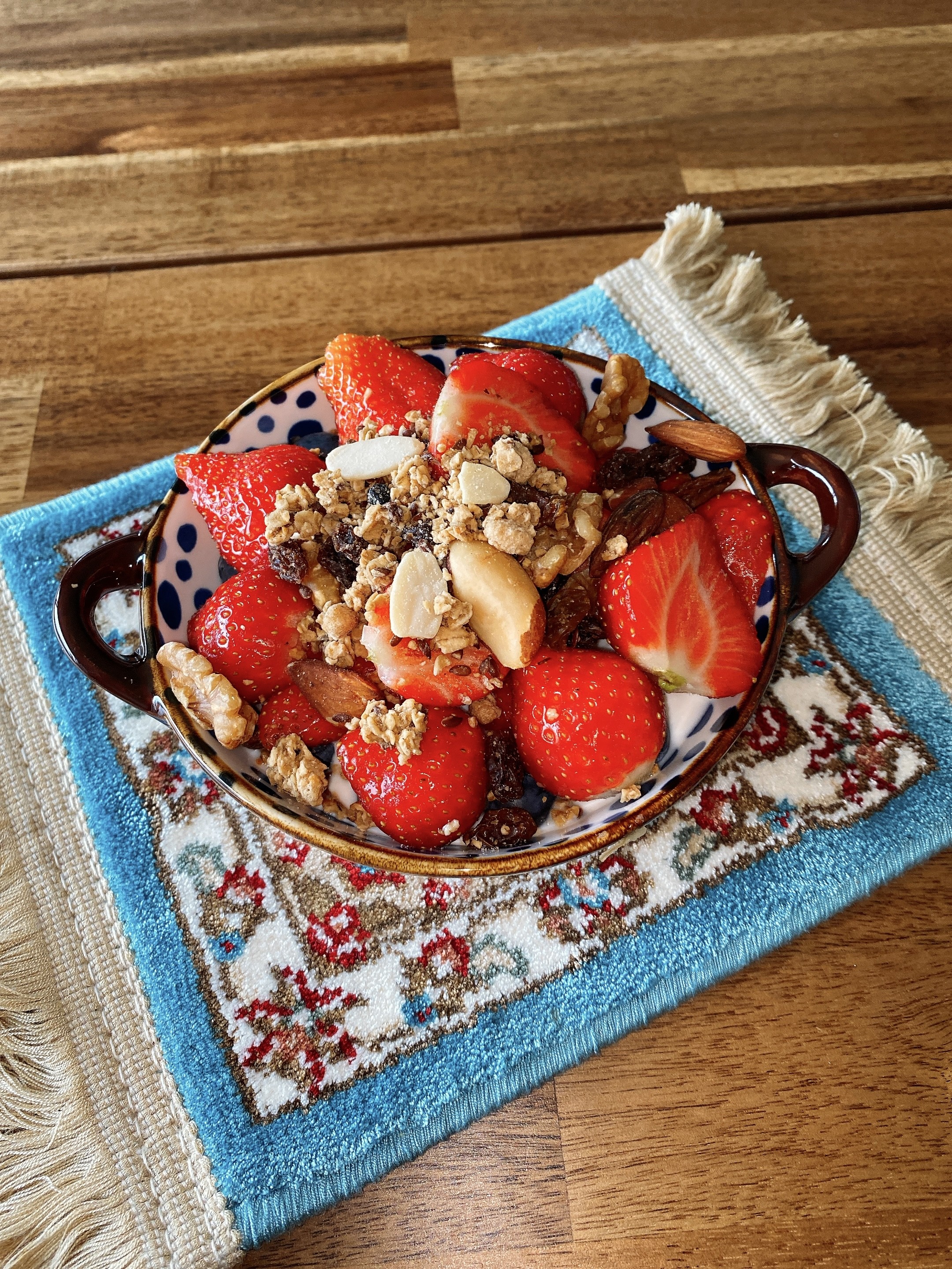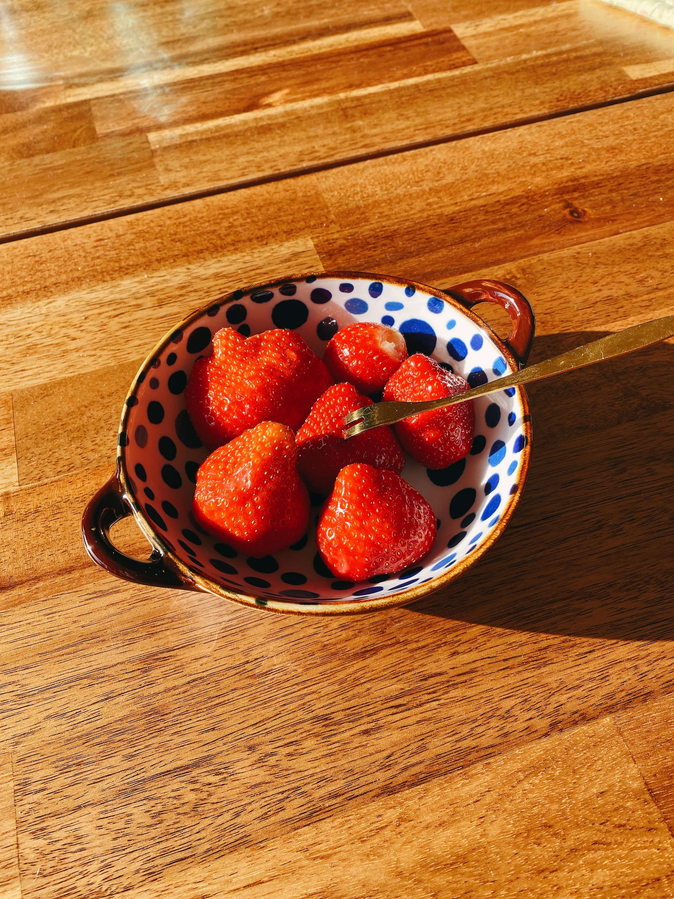 家人们看我新买的可爱小碗,朋友说能吃米饭。可是只能放下六颗草莓!我怕用这么小的碗吃饭一天饿得直哭