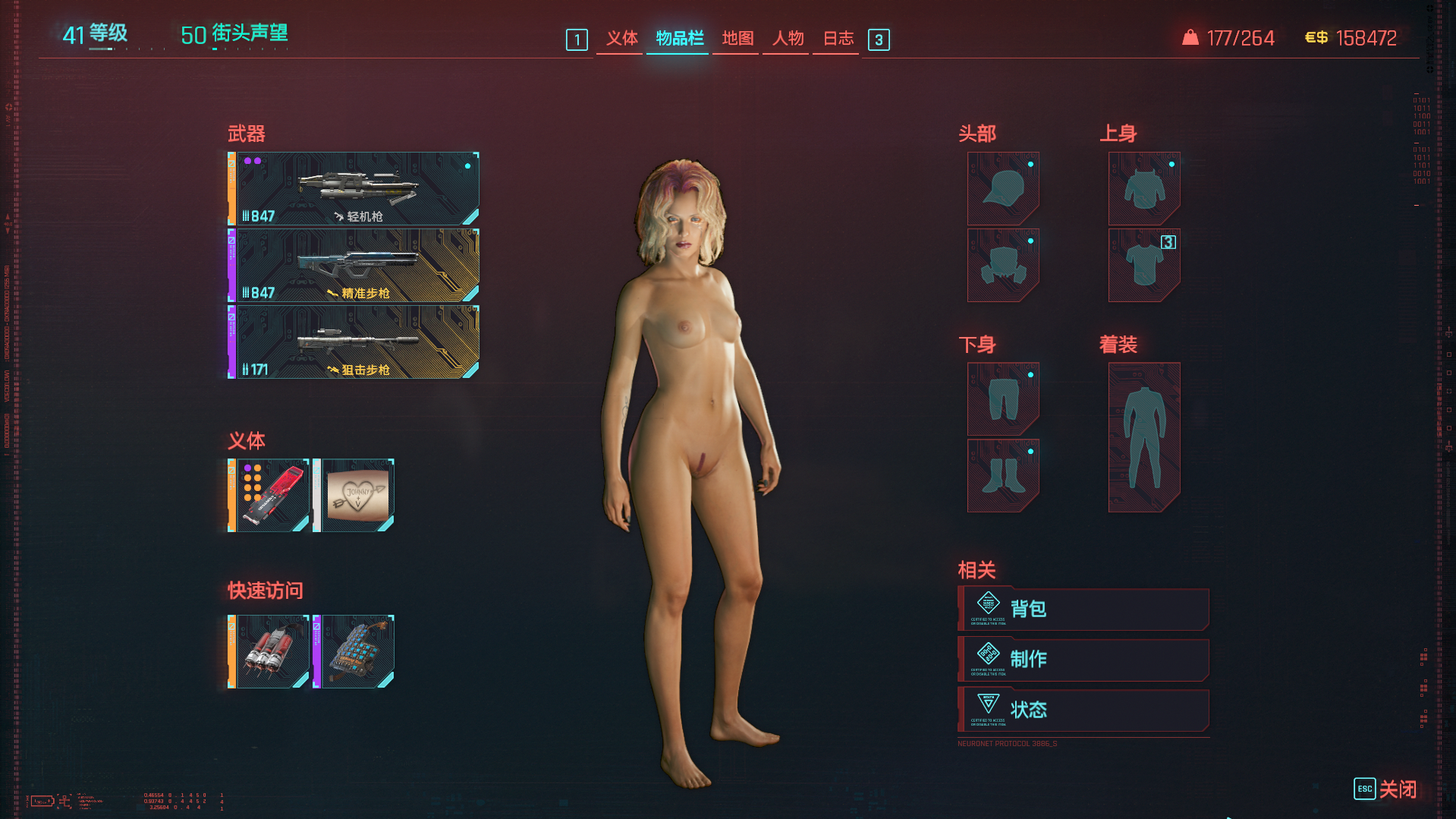 我操我真服了,去参加强尼的演出,南希和丹妮都盛装打扮的,我寻思我换身衣服吧,打开一看我去全裸!只是约会睡了一觉第二天怎么衣服不翼而飞了?我在夜之城裸奔了一天,在警车旁溜门撬锁,把警察弄晕了之后试图枪击嫌疑犯,开着蓝色小飞袖超跑顶人屁股,没一个人提醒我,可能以为是时尚吧,还在这和强尼的老友打官腔!这地界太邪门了