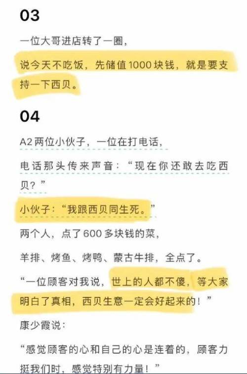 我怀疑西贝货公关里有体制内的人…打死也要吃西贝…丢下 1000 块就跑…一家三代吃西贝…顾客跟西贝同生死…🤔🤔🤔怎么跟我党的话术这么像呢