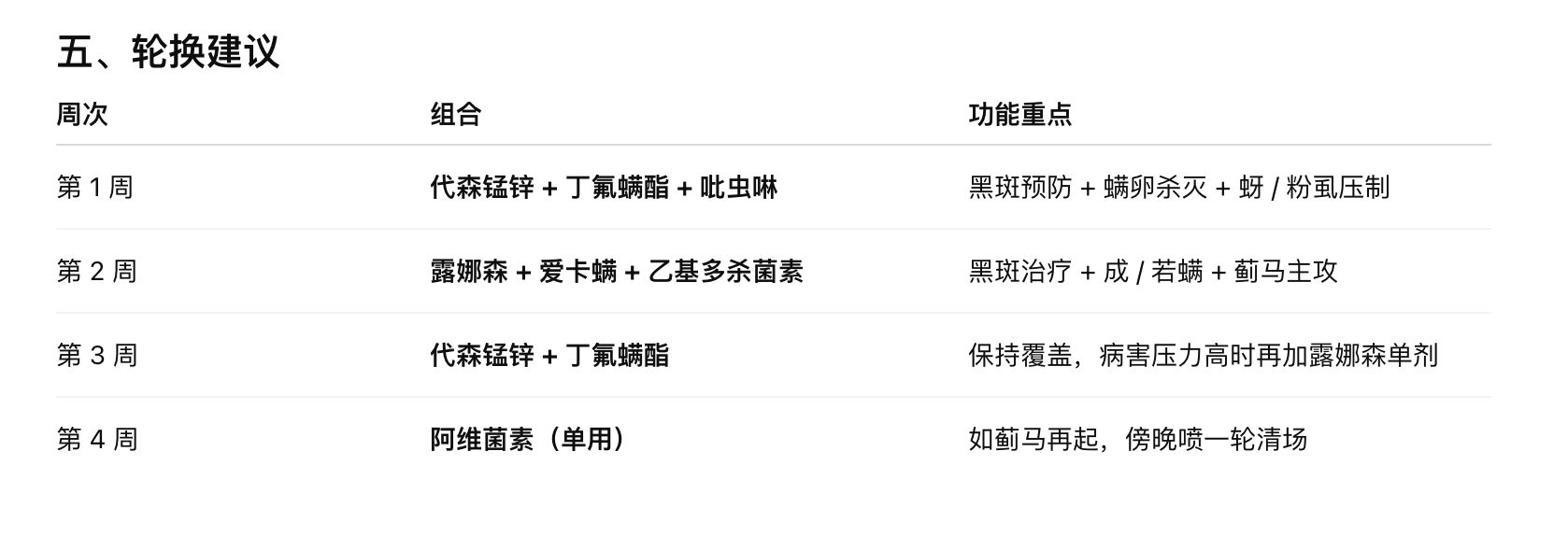月季准备下一轮打药了。这里面主要都是低毒性低剂量的药物,但还是要避免有蜜蜂的时候(开花之后就不打了。