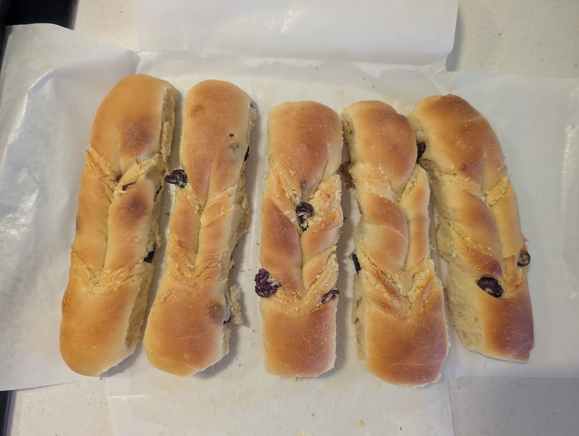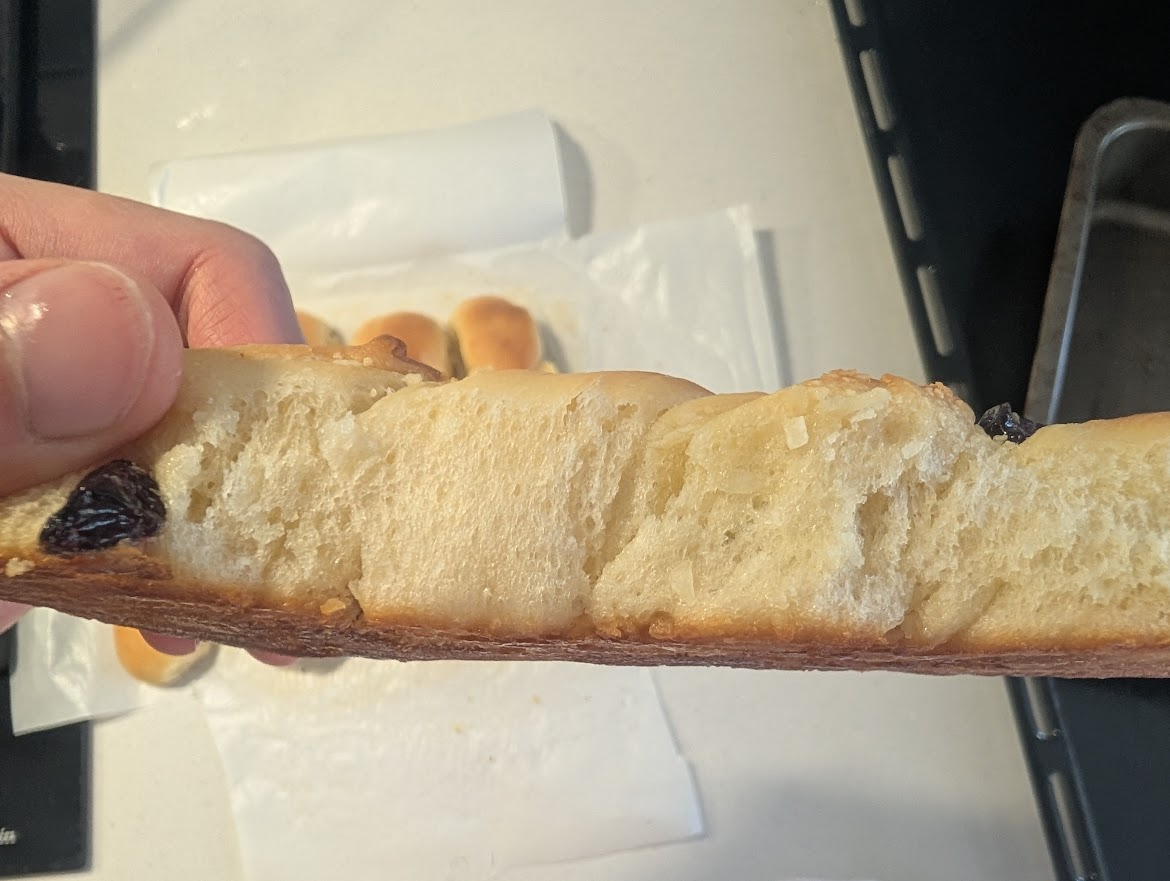 一天做一次麵包,我媽說我瘋了。我說做一次少一次了!然而又翻車了,還是二發的問題,溫度太高了。真的好難控製啊!!但是加了椰蓉和蔓越莓,很難不好吃。但是它不對。