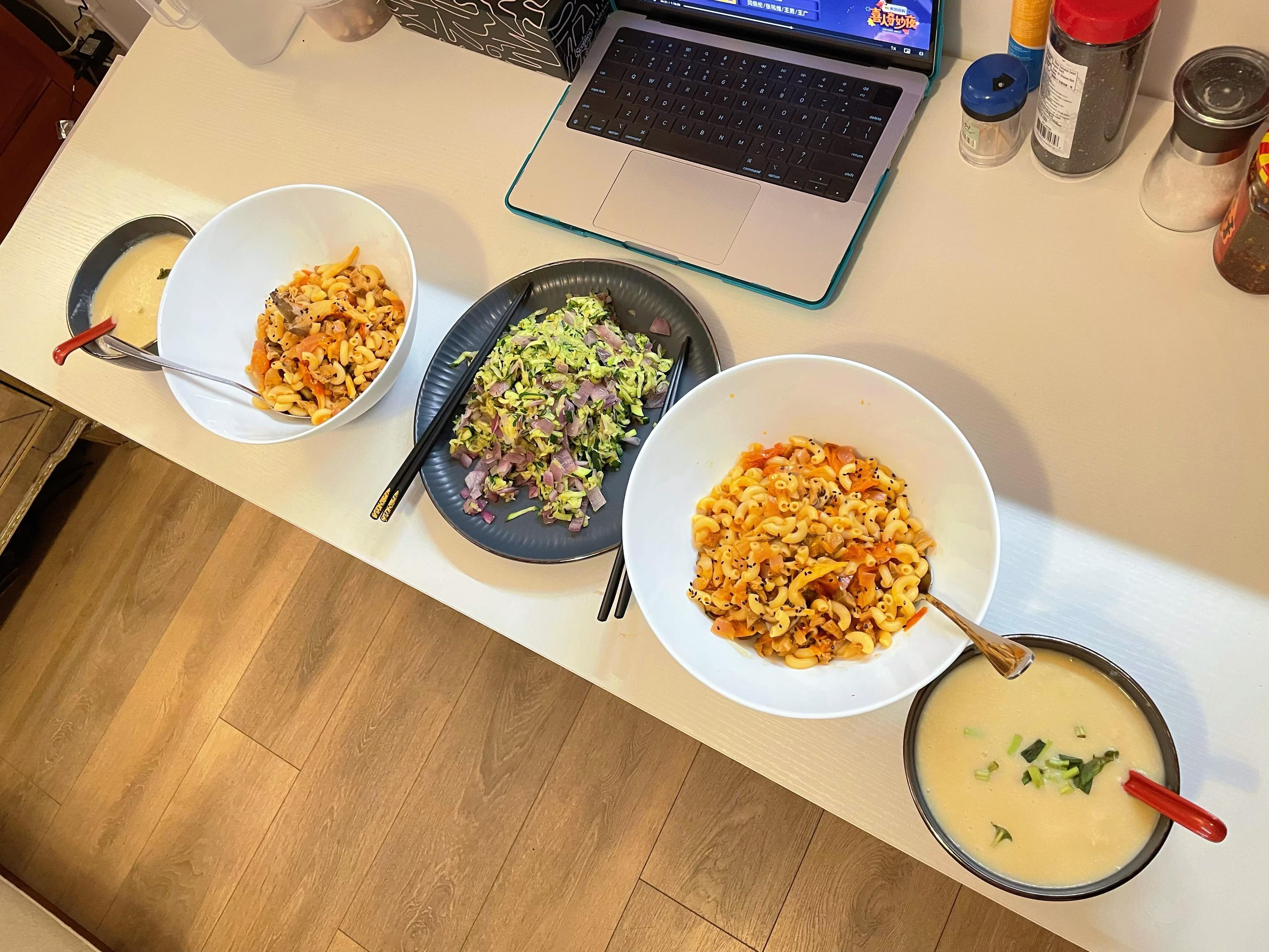 下午俩人看了一下午的电视,然后一起做了有前菜有汤有主菜还有甜品的圣诞大餐!除了中间那个zucchini是我严格按照菜谱来的,其他都是我瞎编乱造或者魔改的,甚至焦糖布丁🍮都因为家里材料不够了进行了一些改编。没想到非常成功嘻