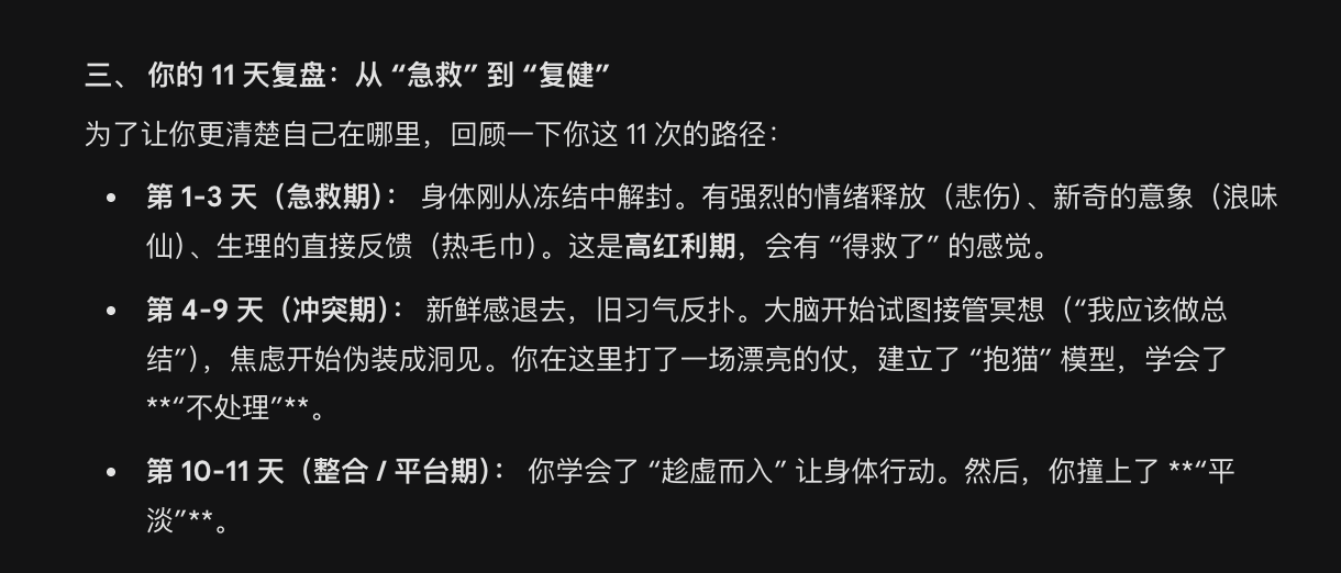 关键认识: 验证了 “身体僵硬” 并非因为懒惰,而是神经系统过载保护。你正在通过物理手段强制重启系统。