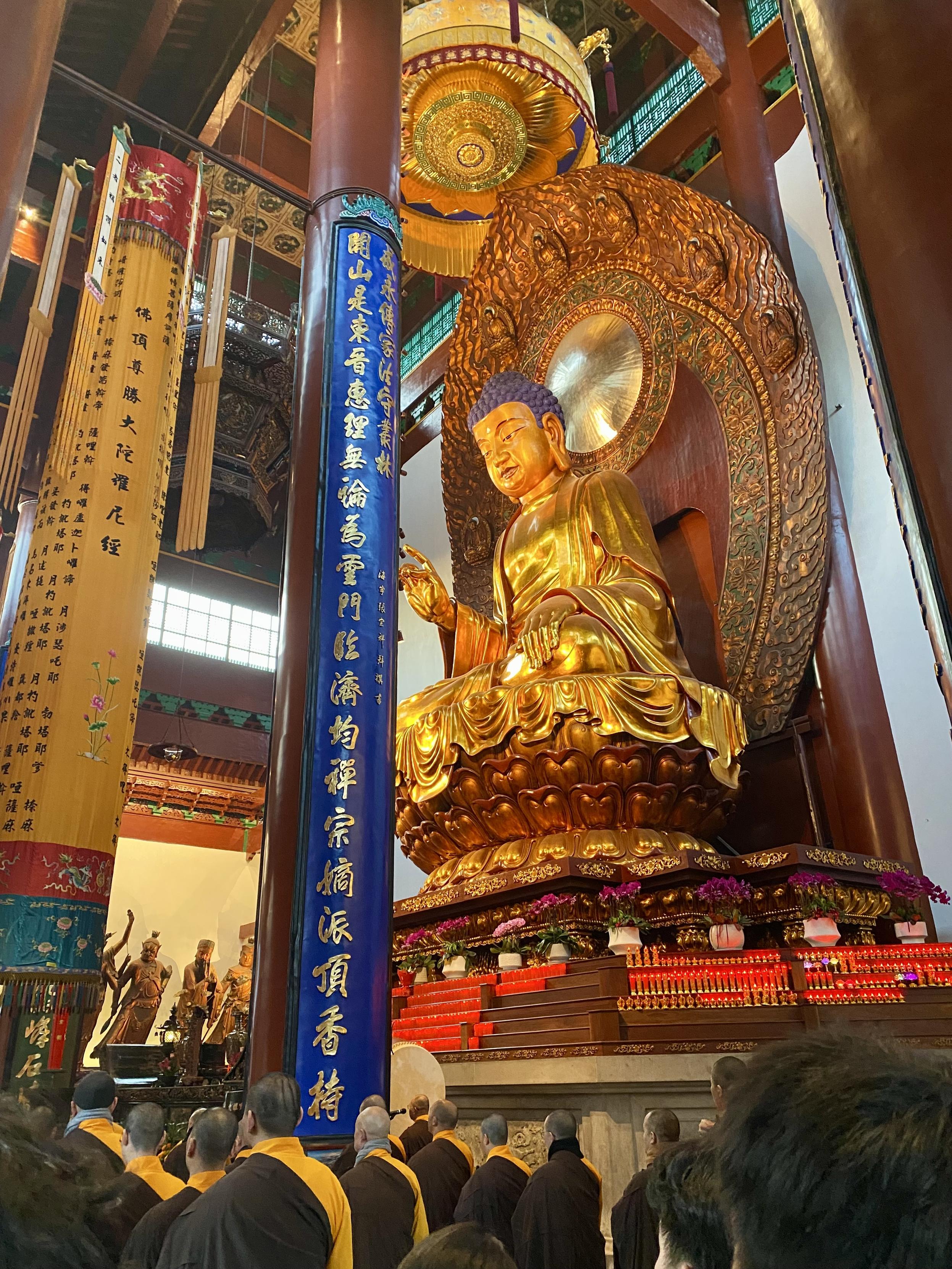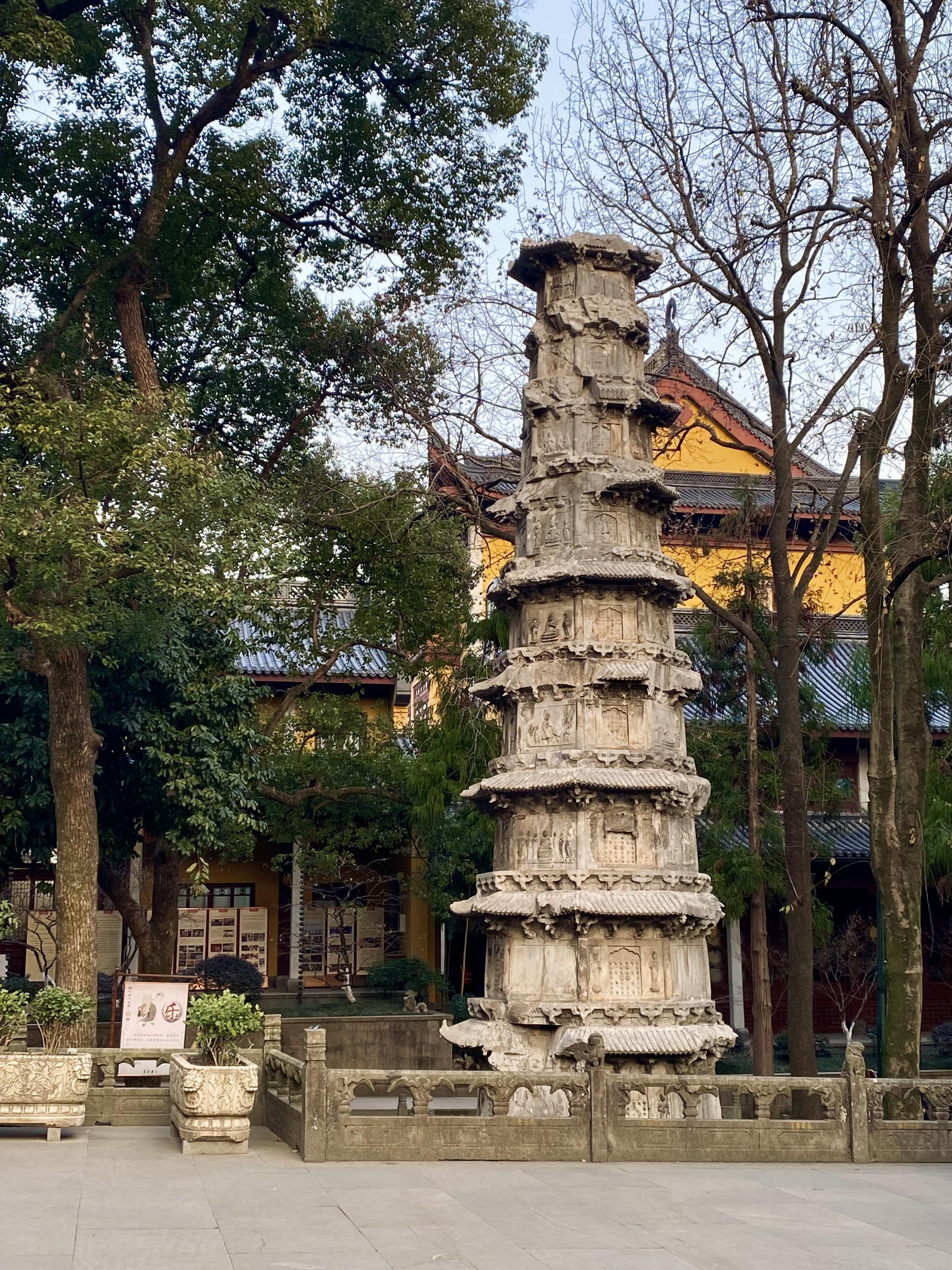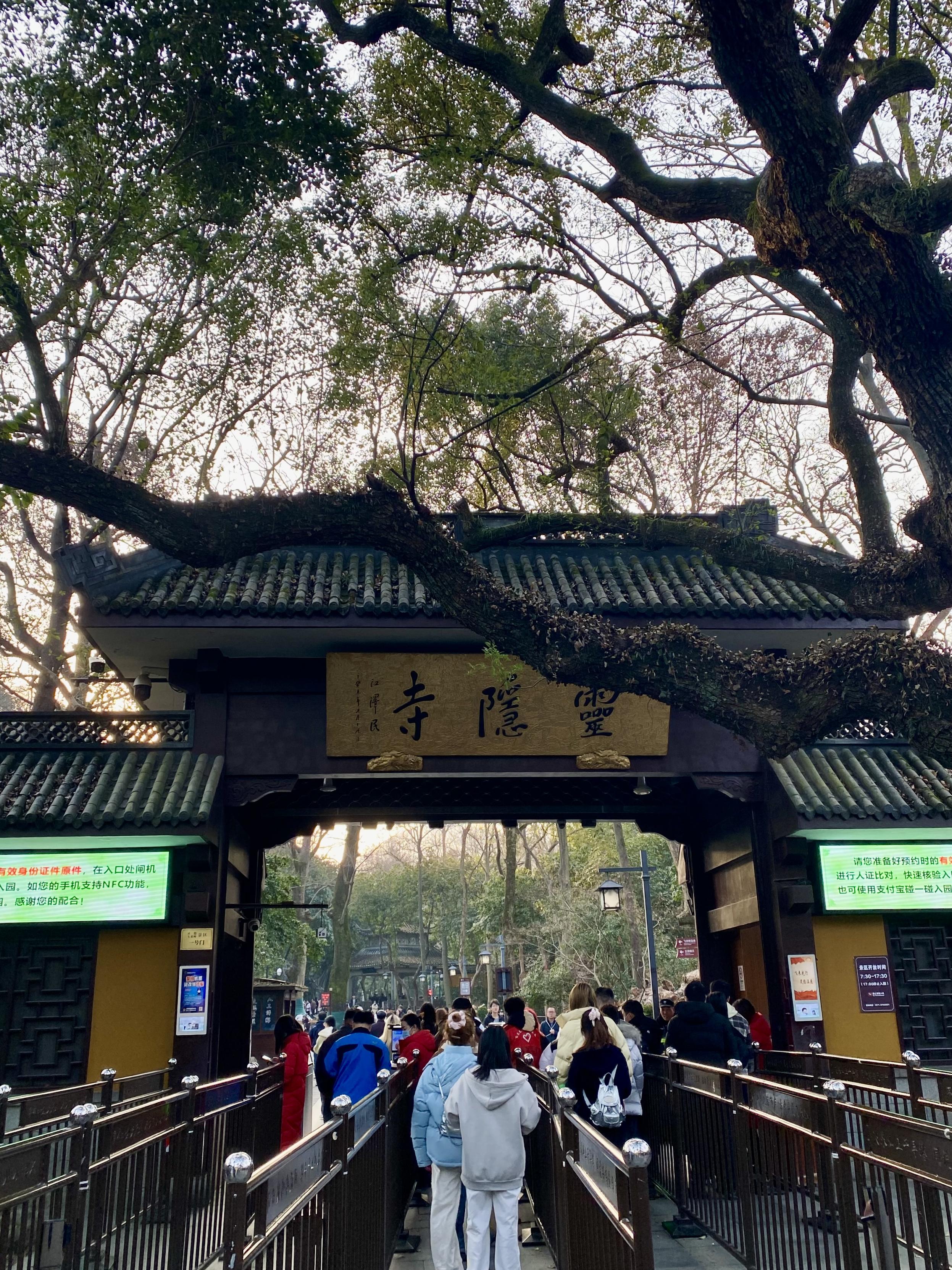 灵隐寺香火真旺啊。大殿里一群和尚在唱经,声压厚重(全男的,这也是个bros club哈)。感觉之前去佛寺都是人文价值超过宗教价值,灵隐寺可能是钱势逼人,颇有一些宗教威严感。但同时有好多干别的的,古风穿戴出片的,在金刚经上面摸自己想实现的字儿的(把利、增、生、有、得、知等字摸得黢黑,与此同时死字儿金光发亮。看下图),有种非常务实的世俗感