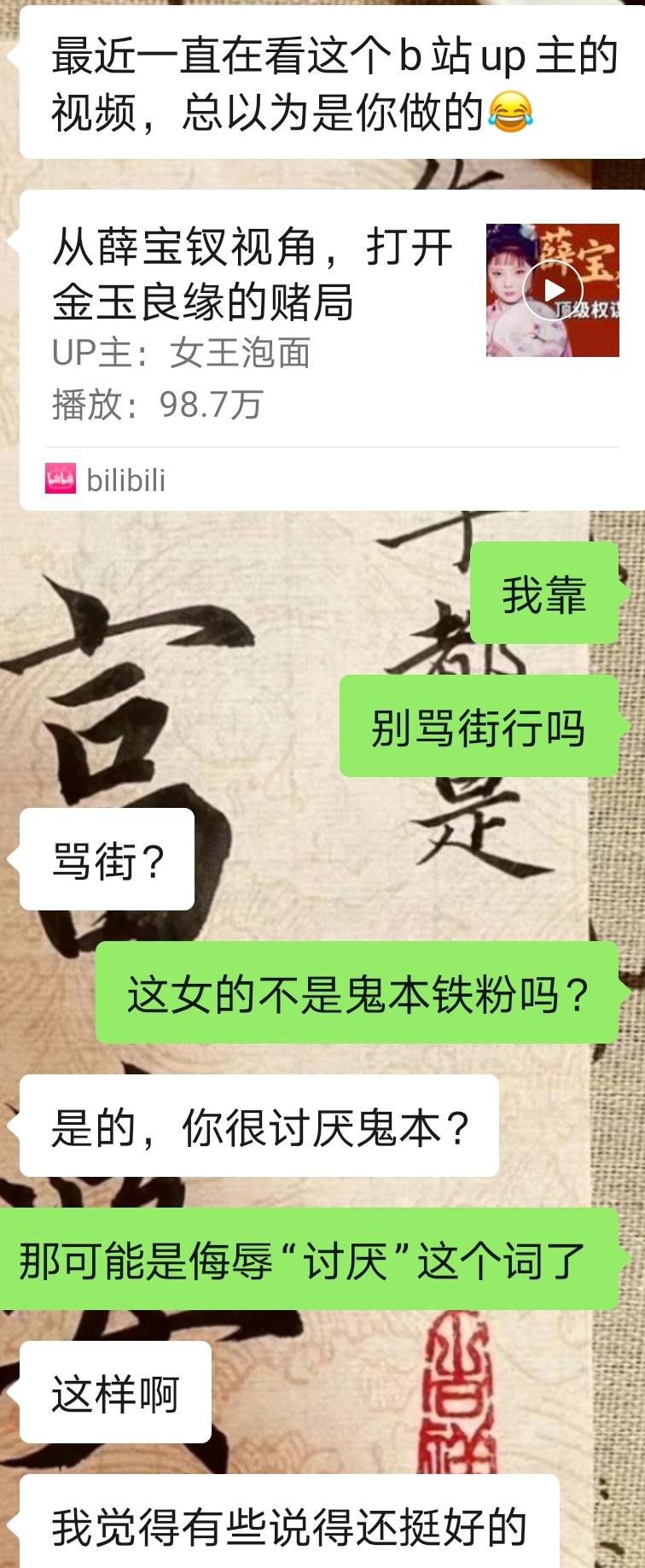 曾經有一個很好的朋友,大概五六年前因為一件很荒唐的事吵架了還互刪了。剛才他突然來加我好友,我一開始還挺高興。結果人給我來這麼一出。。。。我特麼想直接拉黑。。。。這人還是個小有名氣的影評人。就這品味。但也不意外,畢竟當年他真心實意粉過大如傳。