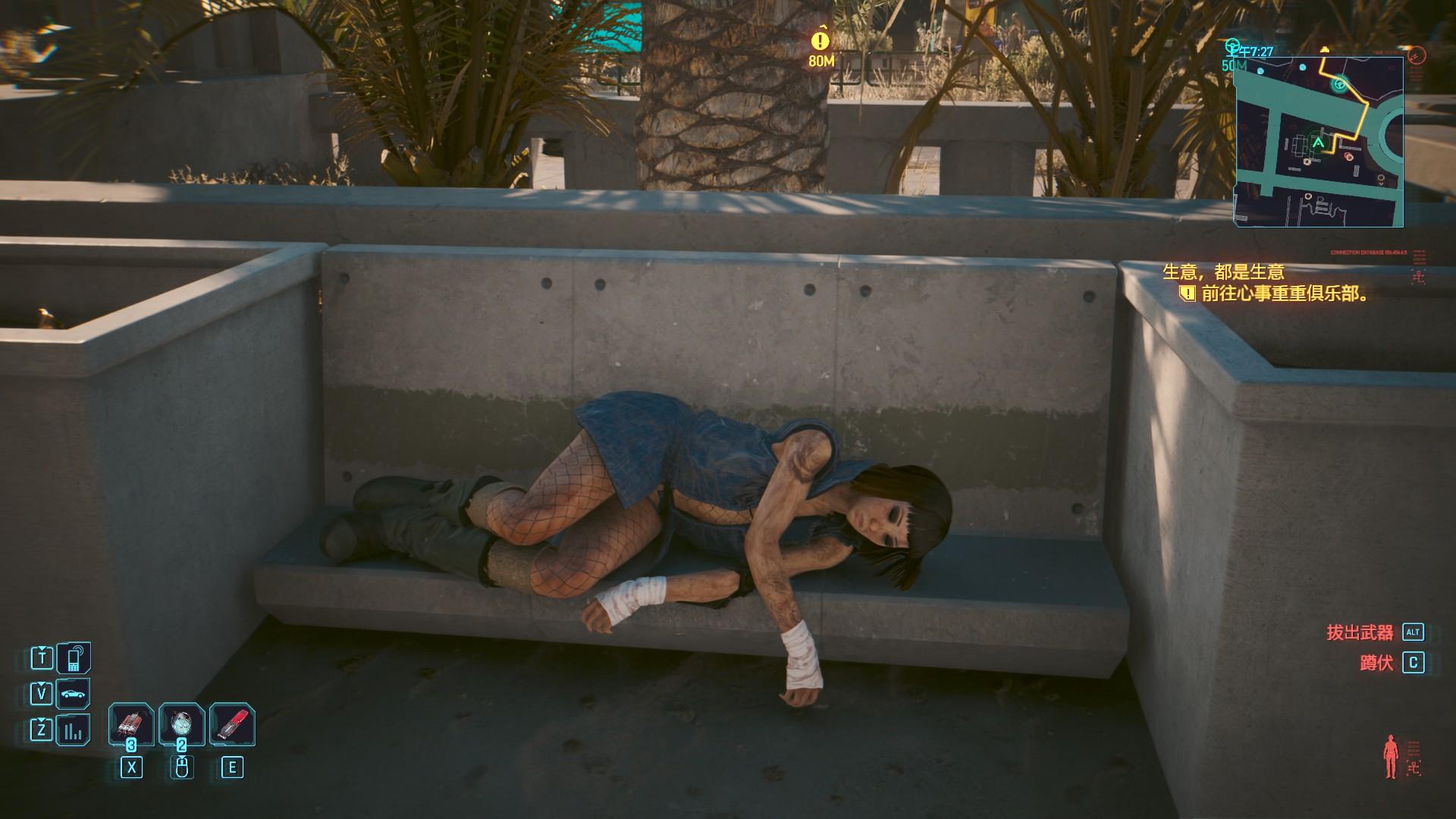 狗镇的视觉系咋这么多,大家都在抽颜色很鲜艳的电子烟,连流浪汉都如此有型。相比之下我真是夜之城土狗