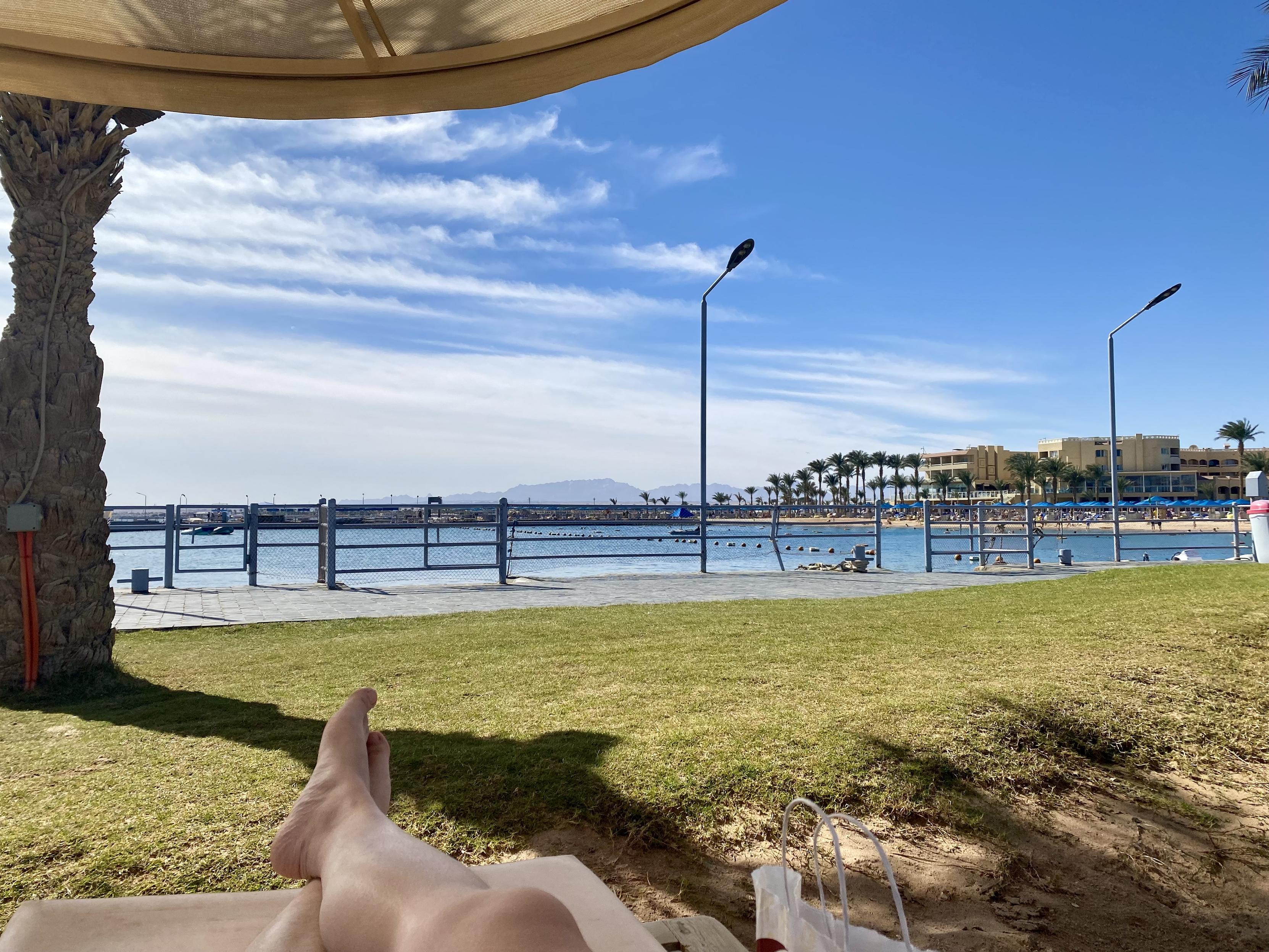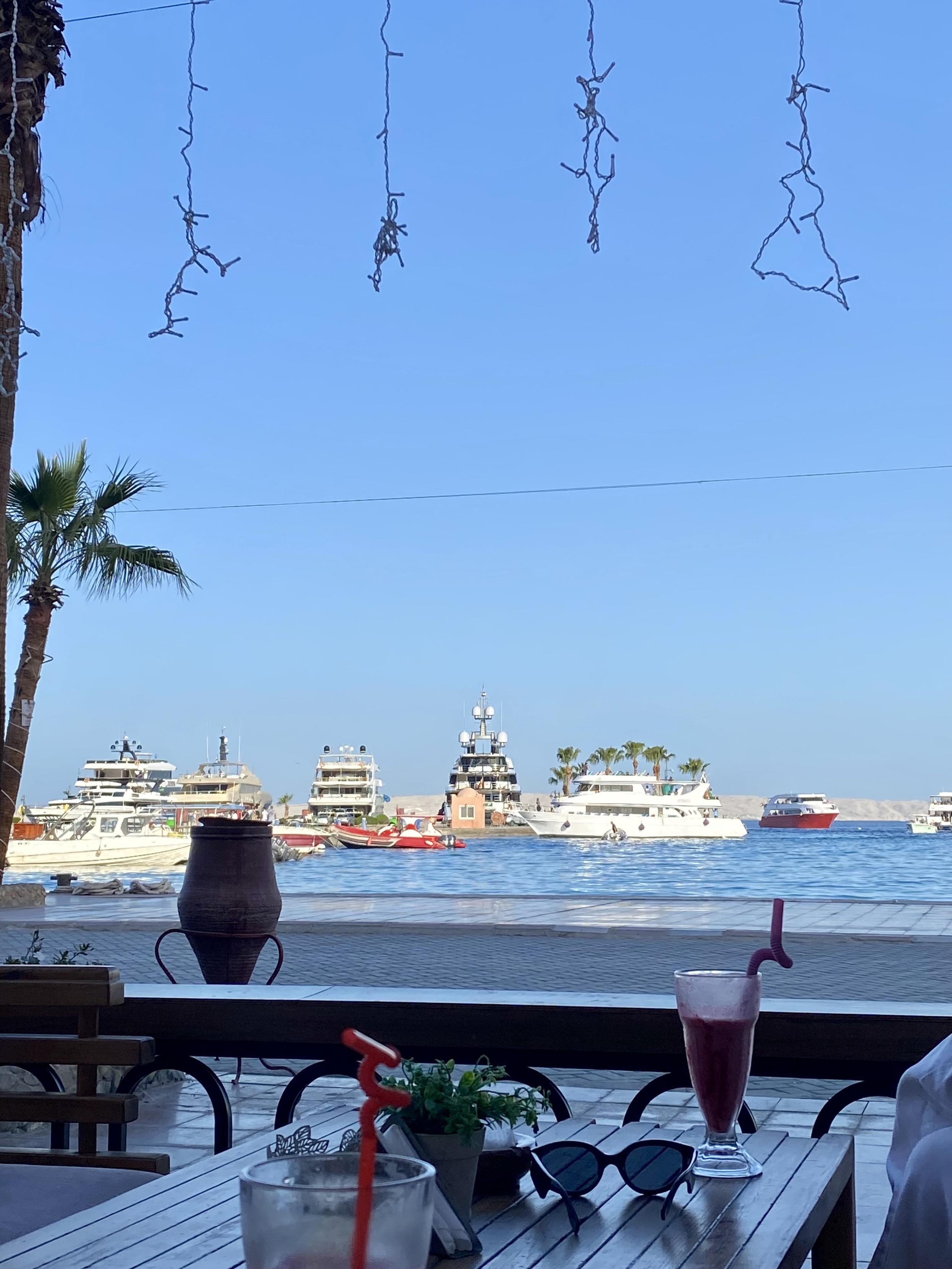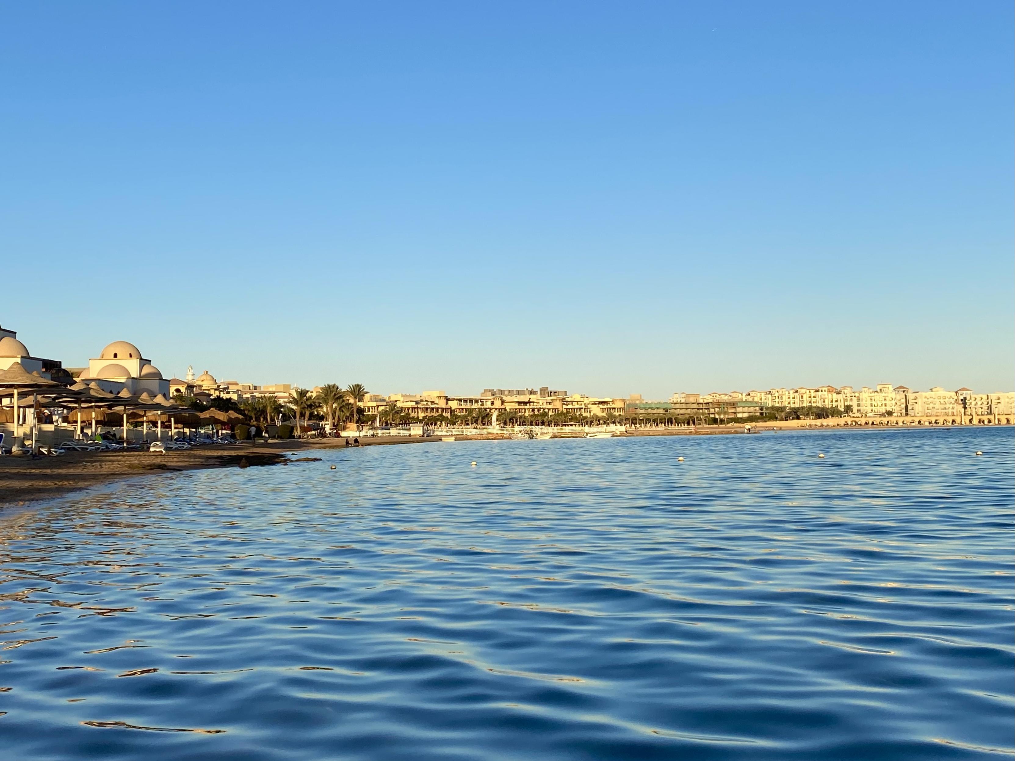 感觉来得不对吧,这是市区吗。这像是20年前刚刚驶出一个县城后国道边上大车加水、洗车、吃饭的地界儿。挺破,挺晒,街上也不太方便步行。非常不chill,我感觉我对这种破地实在没有好奇心。赫尔格达只有一片公共海滩属于居民,其它地方都被酒店私人承包了。和伊斯坦布尔那种破烂的市区和优雅辉煌犹如天降的清真寺不同,这儿是优雅辉煌犹如天降的资本主义。在港口边也是一片专门隔离出来的游客区,这里是有一点像南法了,但是也很虚伪,不知道有啥逛头。还不如躺在酒店两眼一闭,诚实地花钱享受片刻安宁。