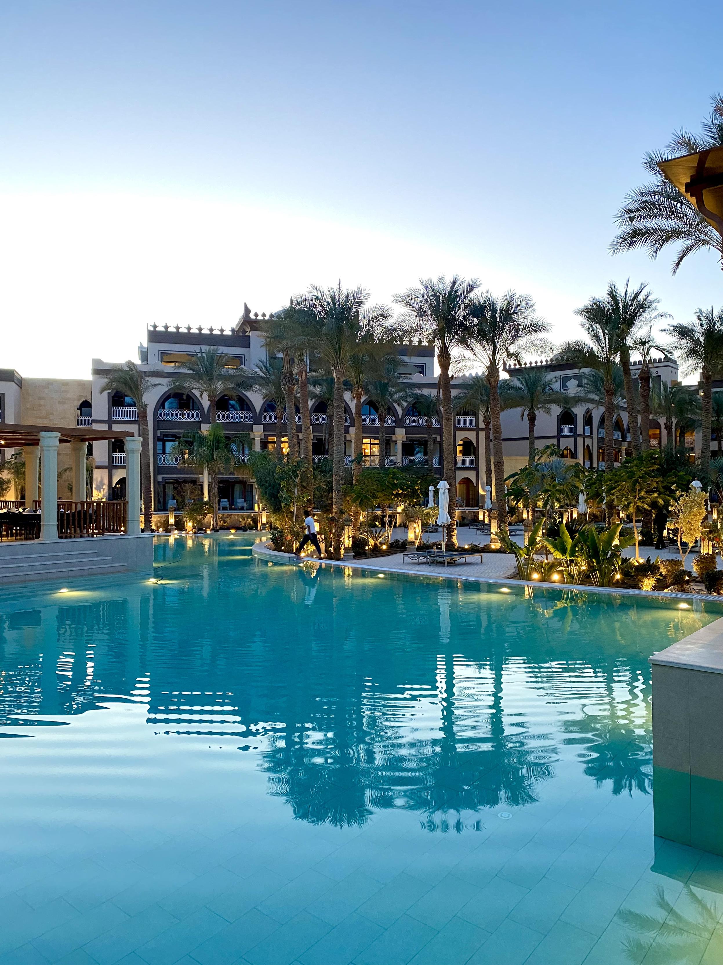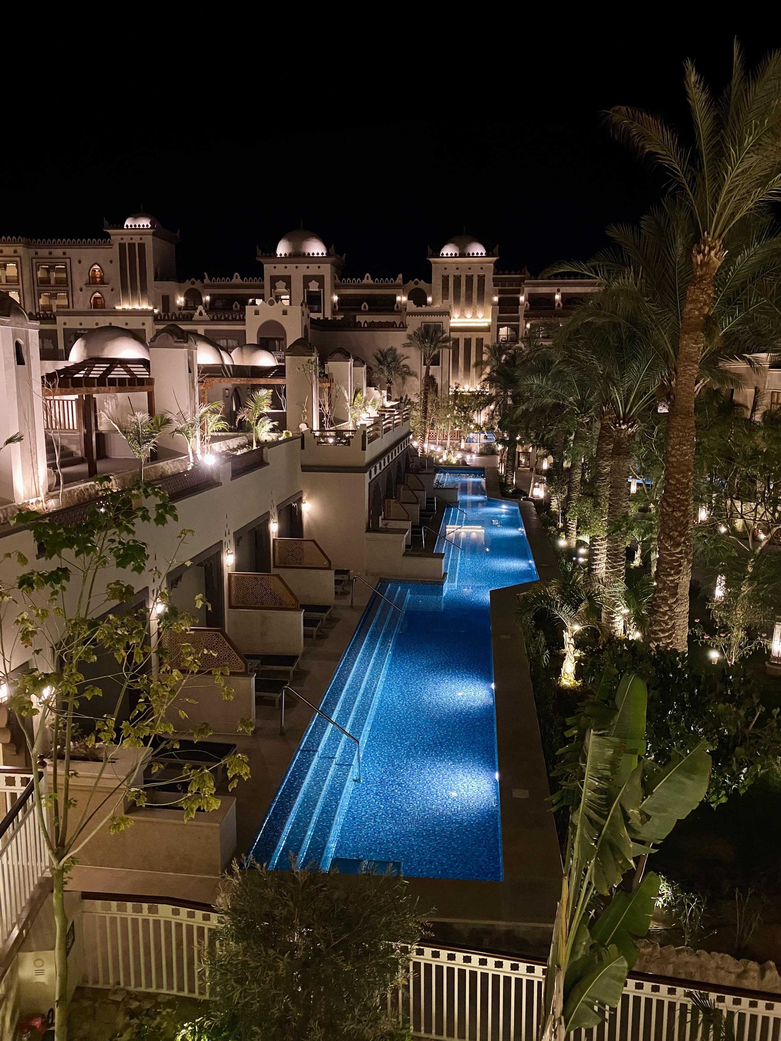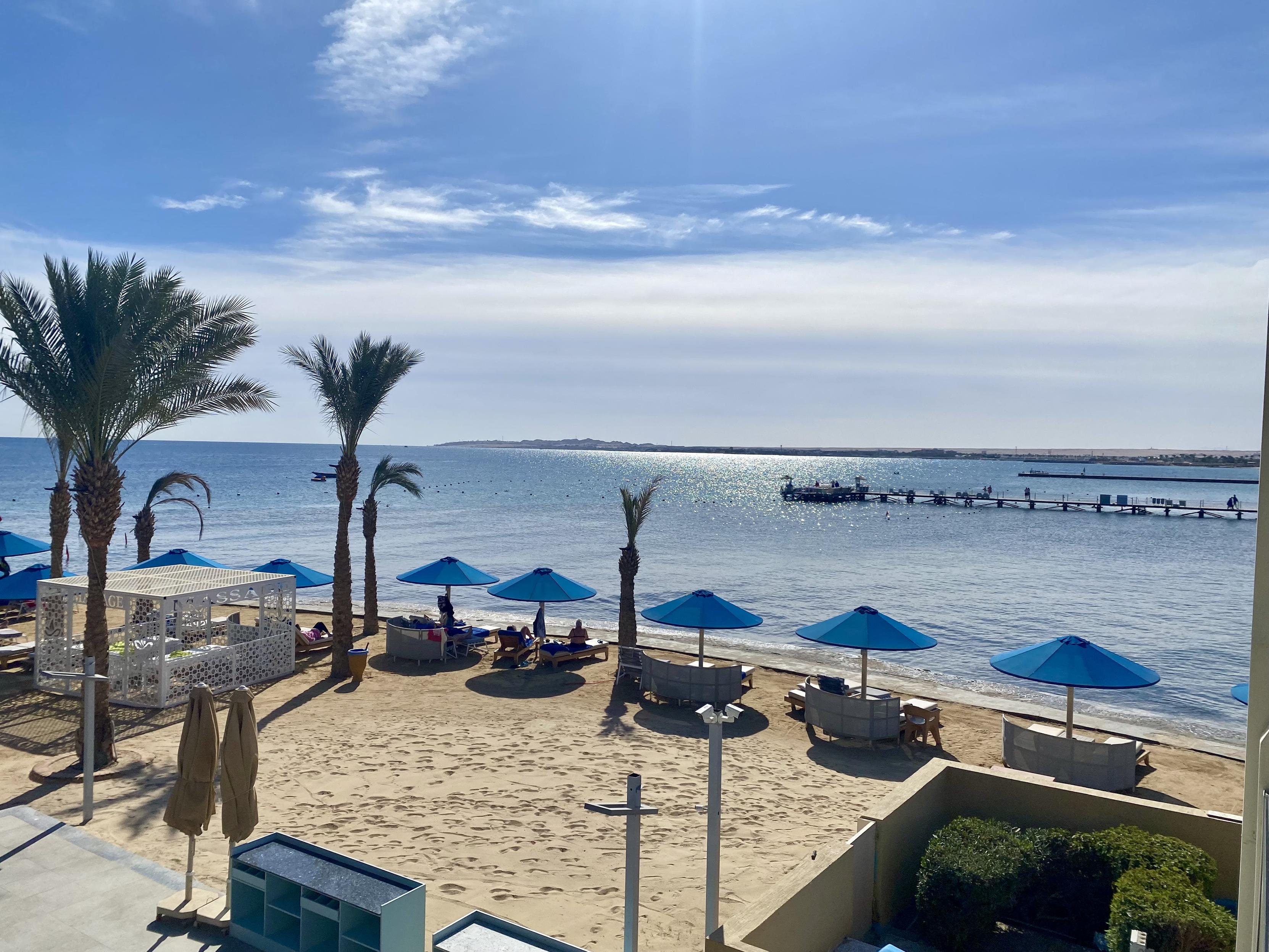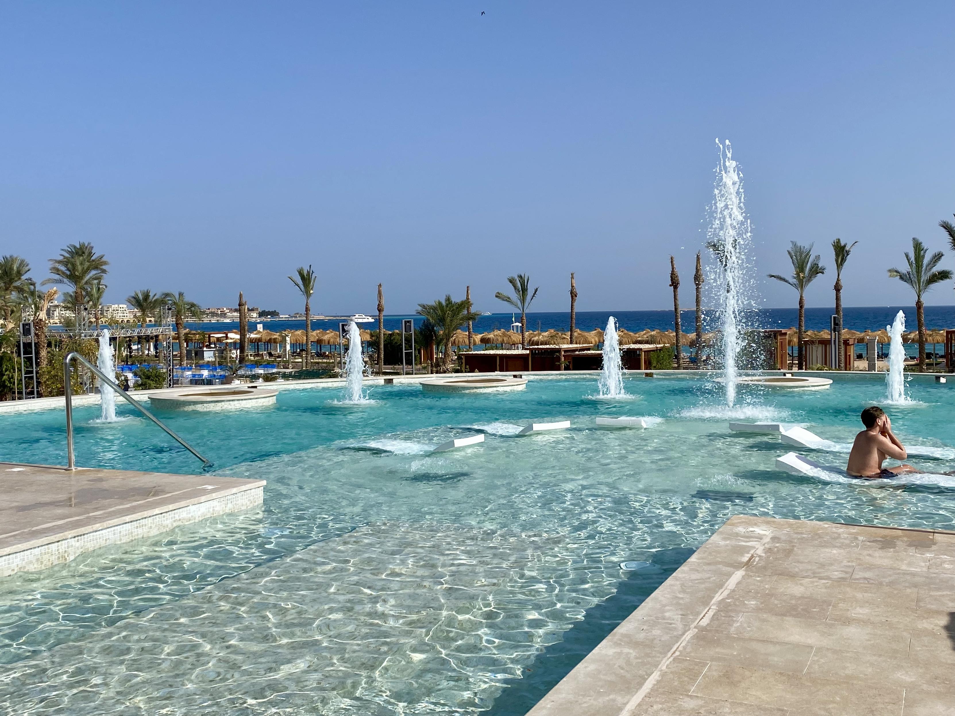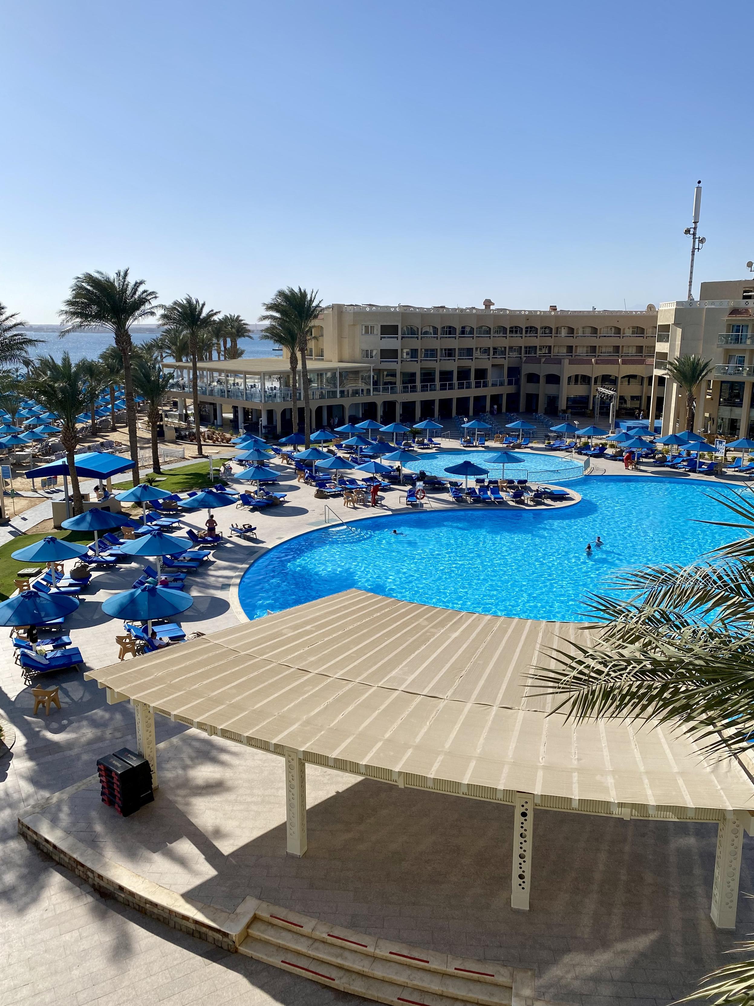 这次度假9夜换3个酒店,都是我精心挑选,属于渐入佳境。第一个浓厚风情,第二个娱乐丰富,第三个酒店2025新开的,名字叫如同皇宫,我进来一看真是啊。这个view,赫尔格达有700个度假酒店,每家有400-600个房,算能招待1200-1500个人,意思是可以容纳85到100万游客同时度假,旺季满客状态下纯房费每夜80million美金。赫尔格达还有700家左右的酒店,酒店档次多样,算便宜点,这些酒店和度假村加一起,算120million。