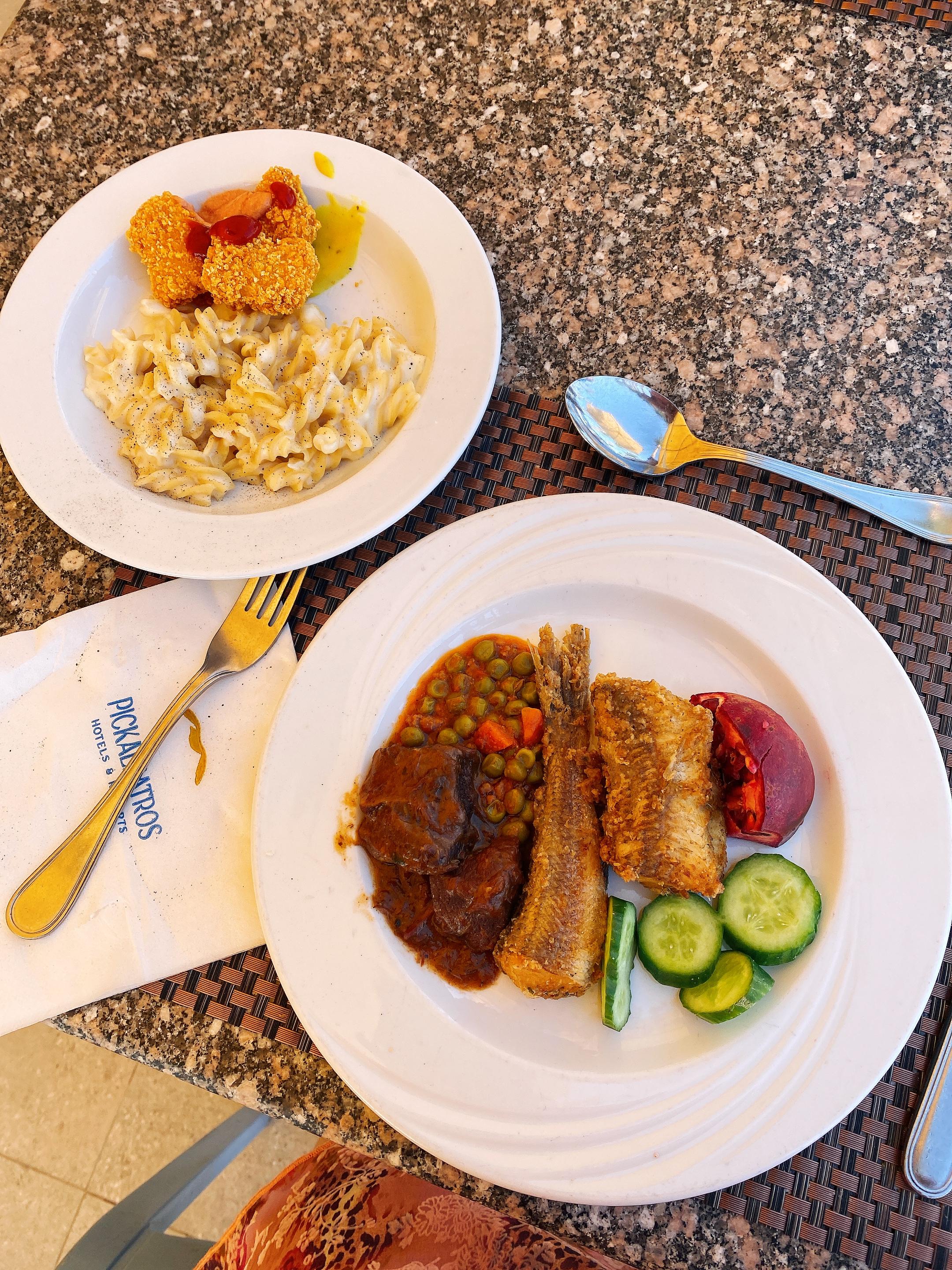 甜品排场很大,味道比前两个都好些,酒店二的面包和葡萄酒较为proper,咖啡还是不行,酒店三的鸡尾酒开始像样了,但是葡萄酒不大行。但是出来度假仍然渴望尝到在欧洲平时吃的一切,是不是也完全非常家娃,而且还不是我家。