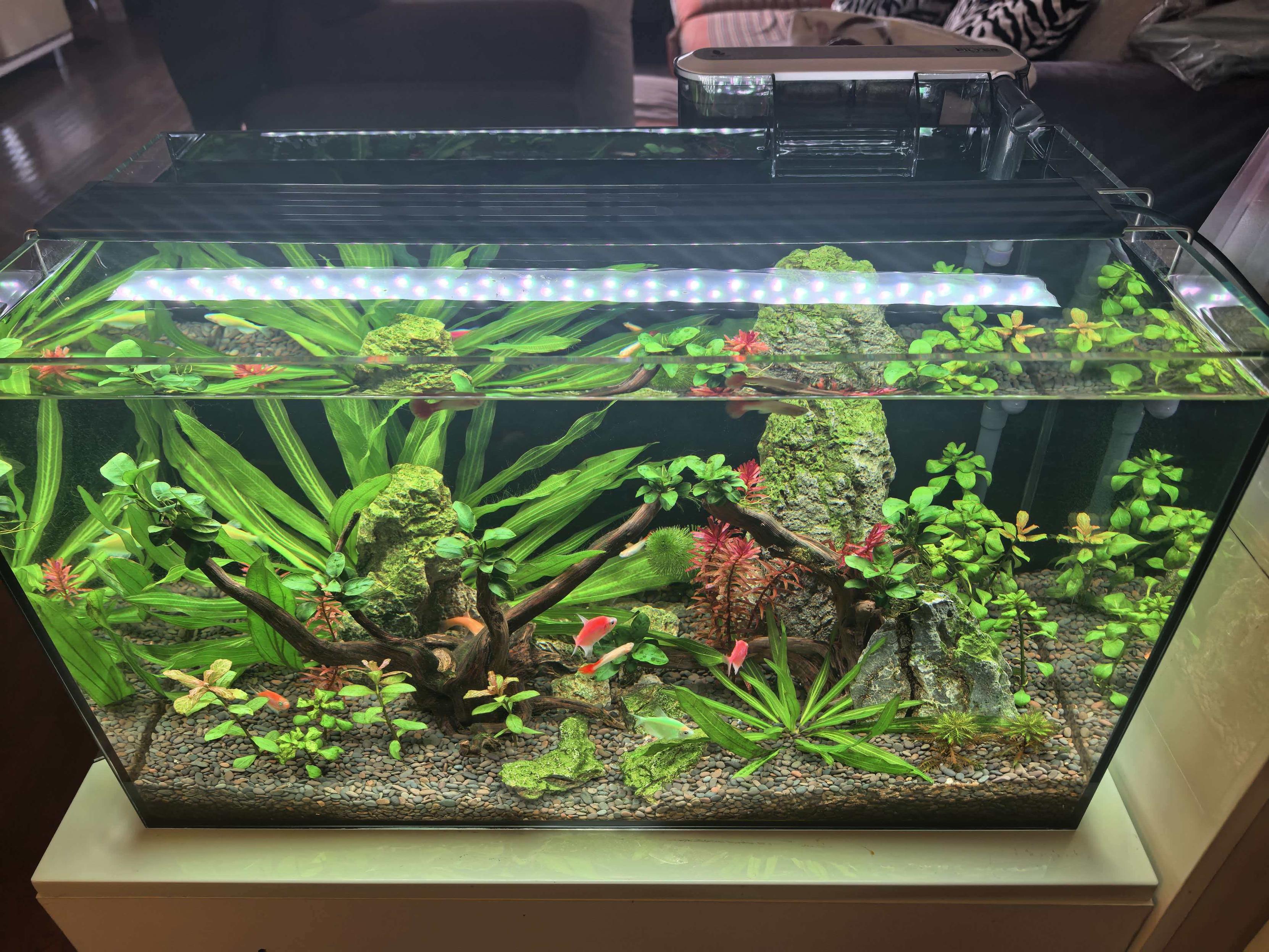 我爸之前养鱼,只通过花鸟市场上货唯一途径维护,三个月换一批鱼,去年年底回去没养了,缸都扔了。今年卷土重来,投入些许钞票整了个草缸,鱼种和草种都给配好,很稳定。要是这玩意儿在我这便宜我也整了,主要是我懒得花心思研究,我不想学!