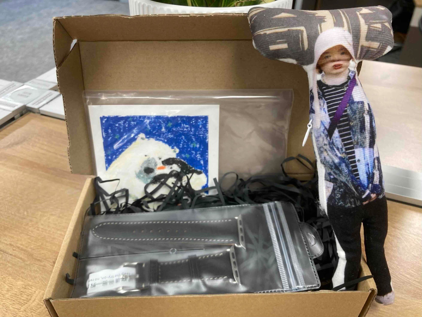 一个我的老鼠干,一个皮表带(她喜欢黑色),一张我的油画棒