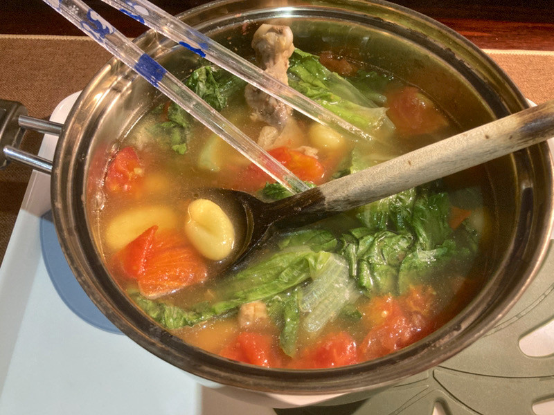 今晚肯定是不会拉肚子(哦对了,菜叶好苦,菜叶被我烧焦了哈哈……