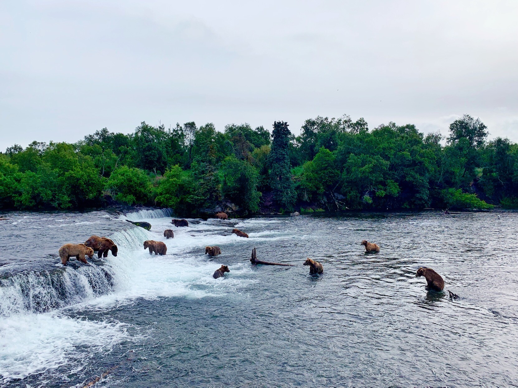 给大家看看正在参加三文鱼自助餐的棕熊们!