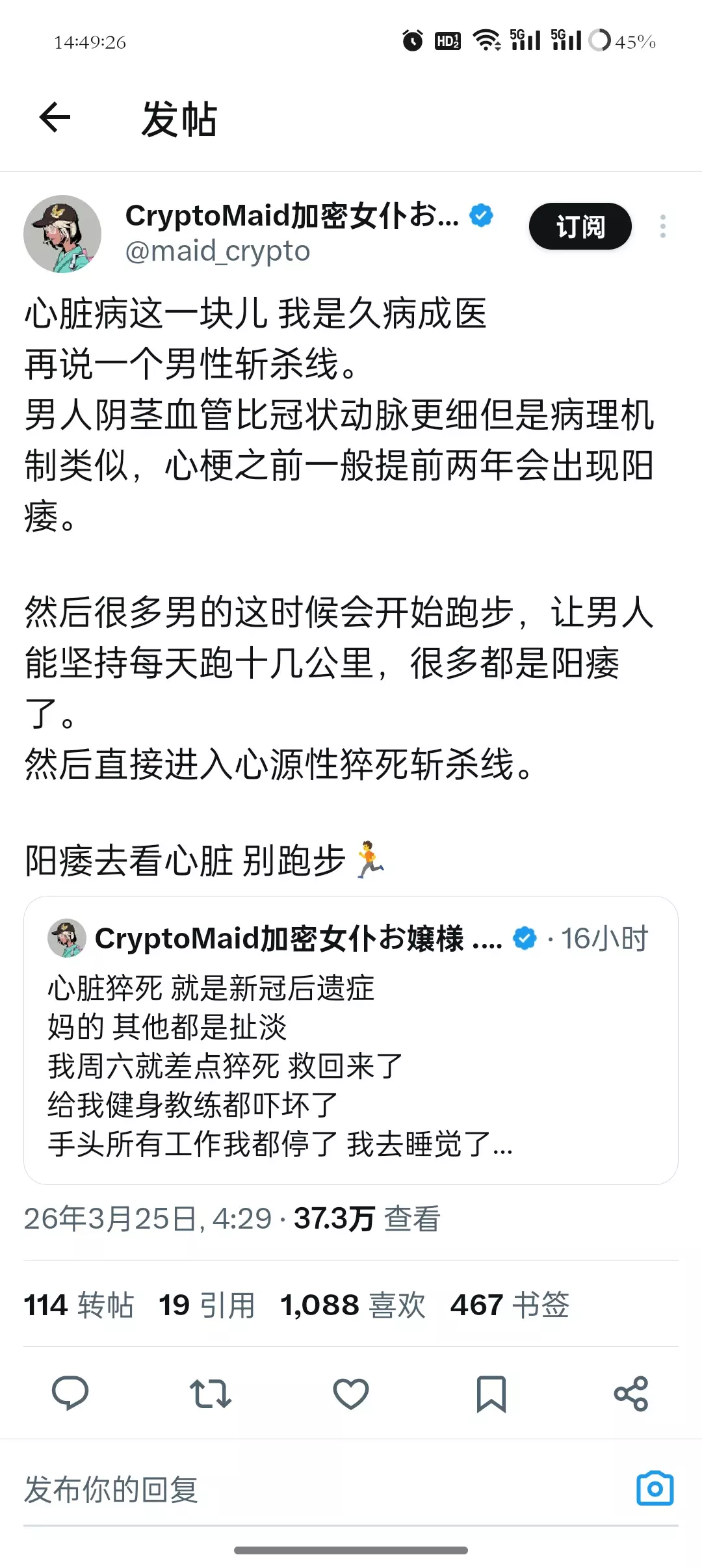我天呢瞬间内心闪过了很多跑马认识的男性一方面怀疑真假另一方面不我不想这样联想并思考认识的人的性功能但是确实就这么联想到了……所以发出来祸害一下fedi