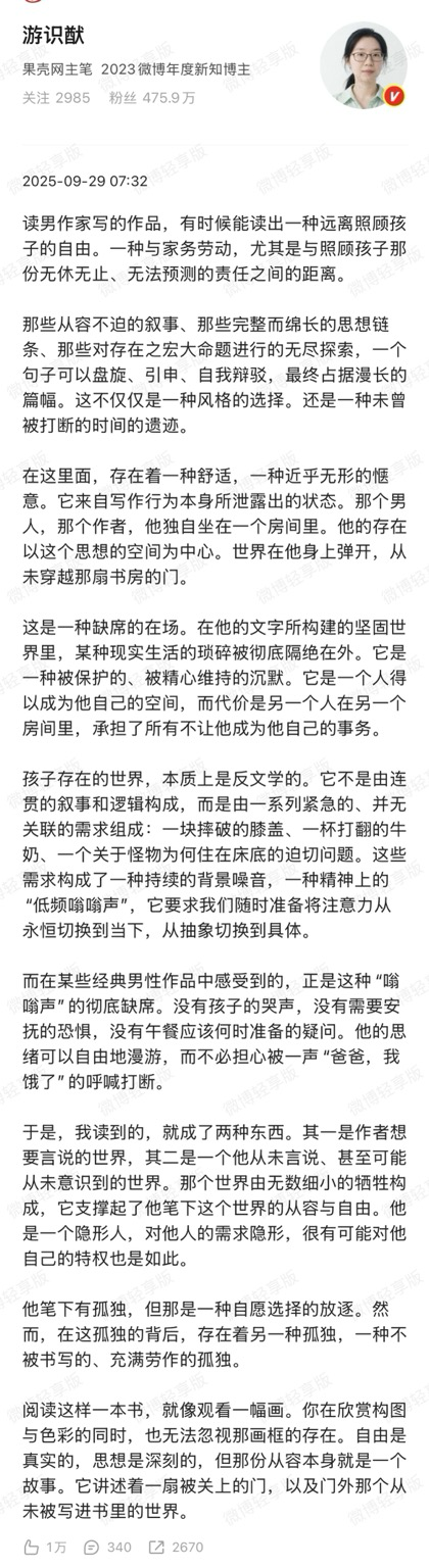男作家是把现实生活的琐碎彻底隔绝在外的。