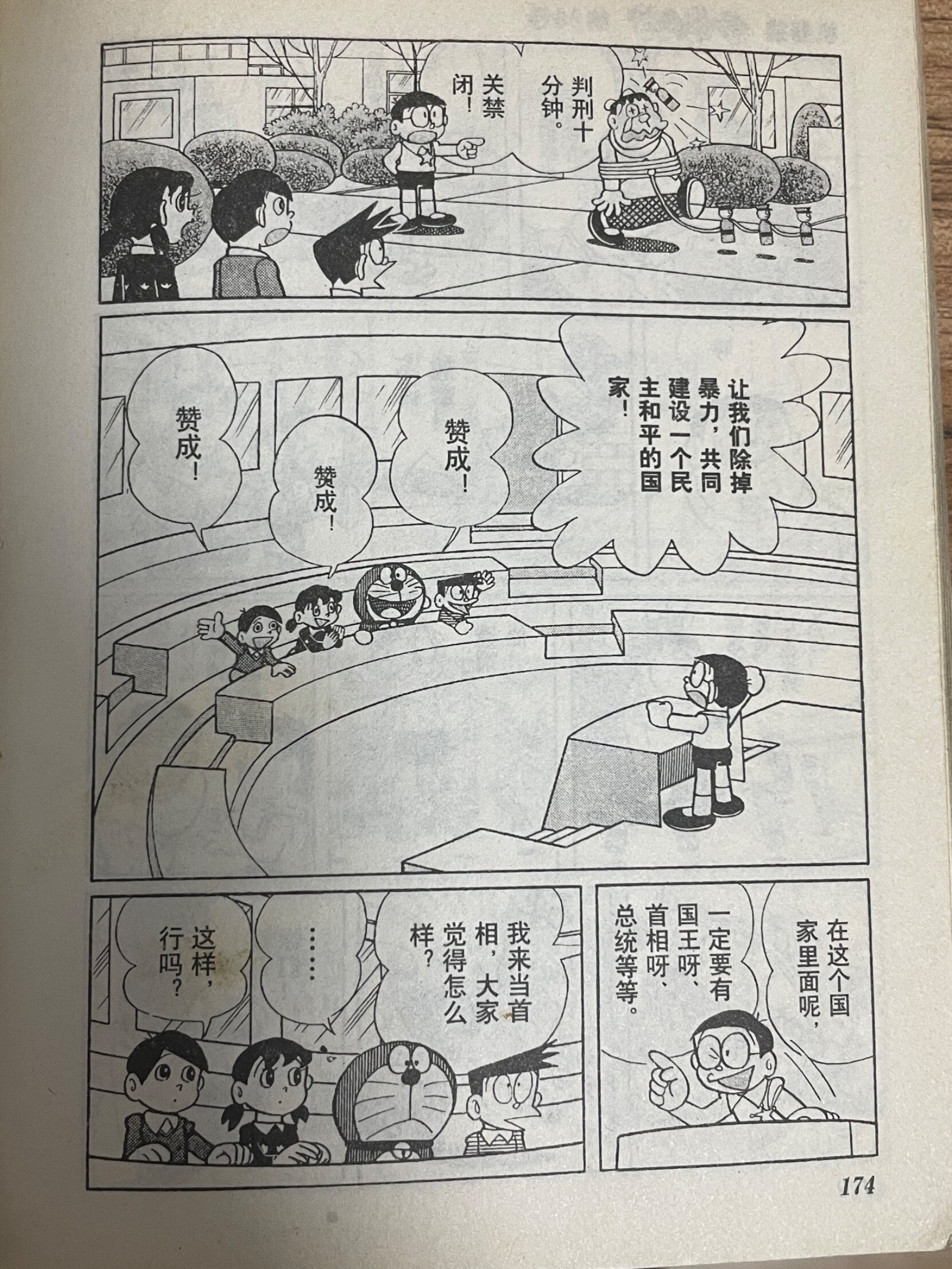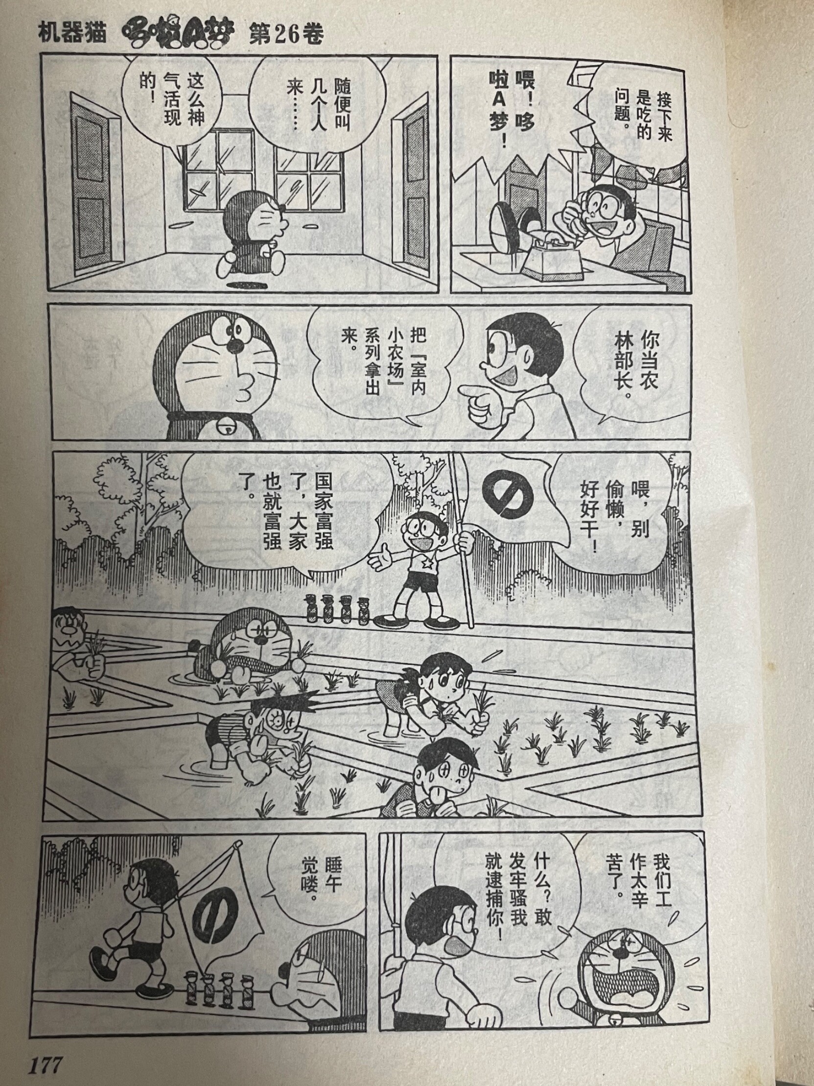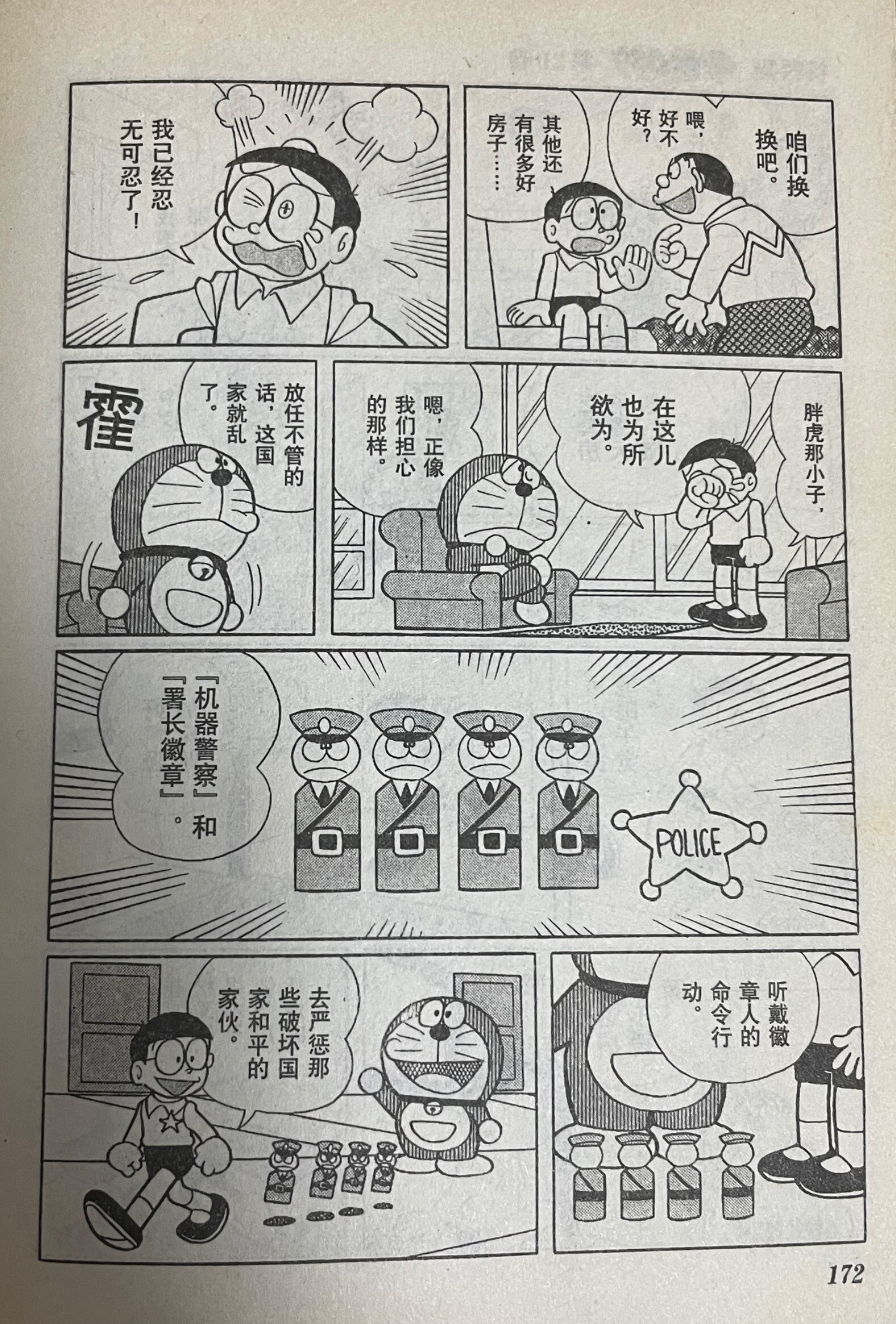 @expecto_patronum @makibaby 我家正好有这话的单行本,不过是小时候买的二手的不知真伪。总之我这本是第26卷,这是倒数第二个故事,名字是“大雄的地下王国”。打算挖洞藏0分考卷的大雄借『随意洞』工具无意挖出了一个超大空间,大雄就邀请伙伴们共同来创造了一个王国。原本只是为了惩戒胖虎,在拿到哆啦A梦给的『机器警察』和『署长徽章』后,大雄却立马变成了一位独裁者,一边奴役大家,一边声称是“为了全国人民”,最后被伙伴们的“武装政变”打倒了,地下王国也随着突发的地震覆灭了。以及0分考卷还是被妈妈发现了。
