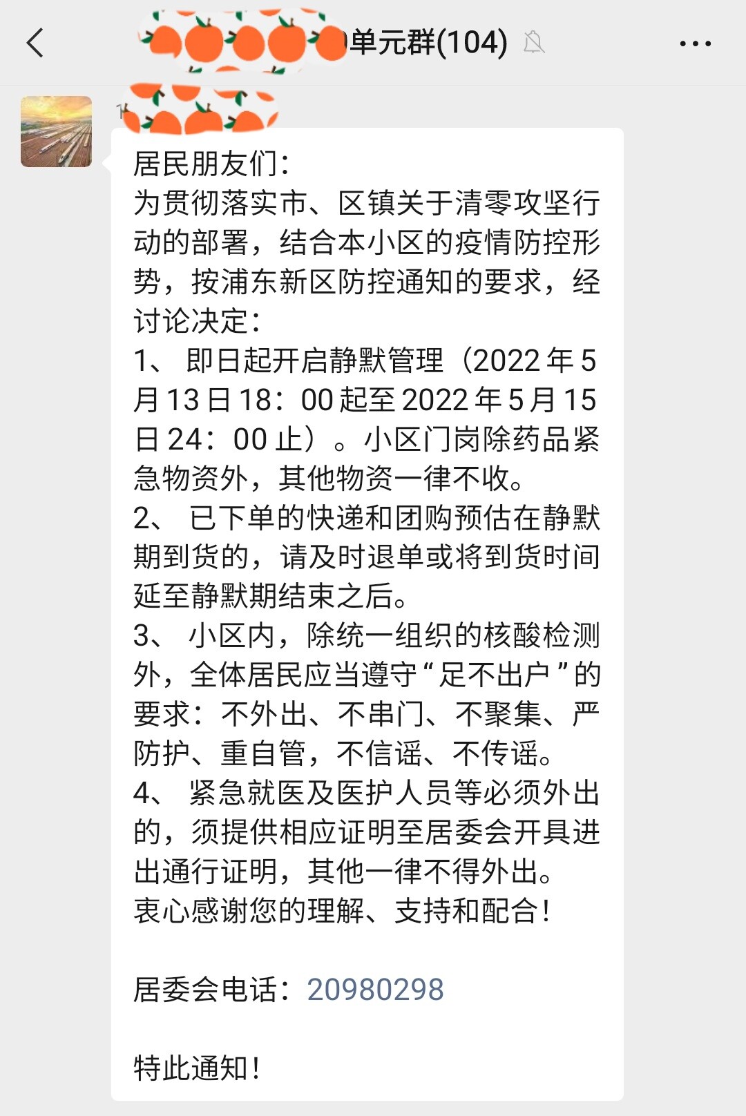 正式发静默通知了(虽然外卖物流已经停了好几天) 说是正式也只是居委的通知 上级发给居委的种种命令是从来没有文件政策公开的 怕担责嘛 出事了就全推给居委
