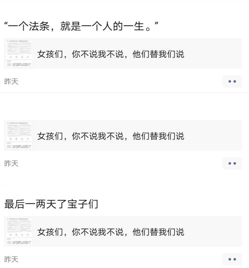 朋友圈昨晚好多人转发提交修改妇女权益法案的推送,今天早上挨个点开全部因违规无法查看,说了,又没说,又说了。
