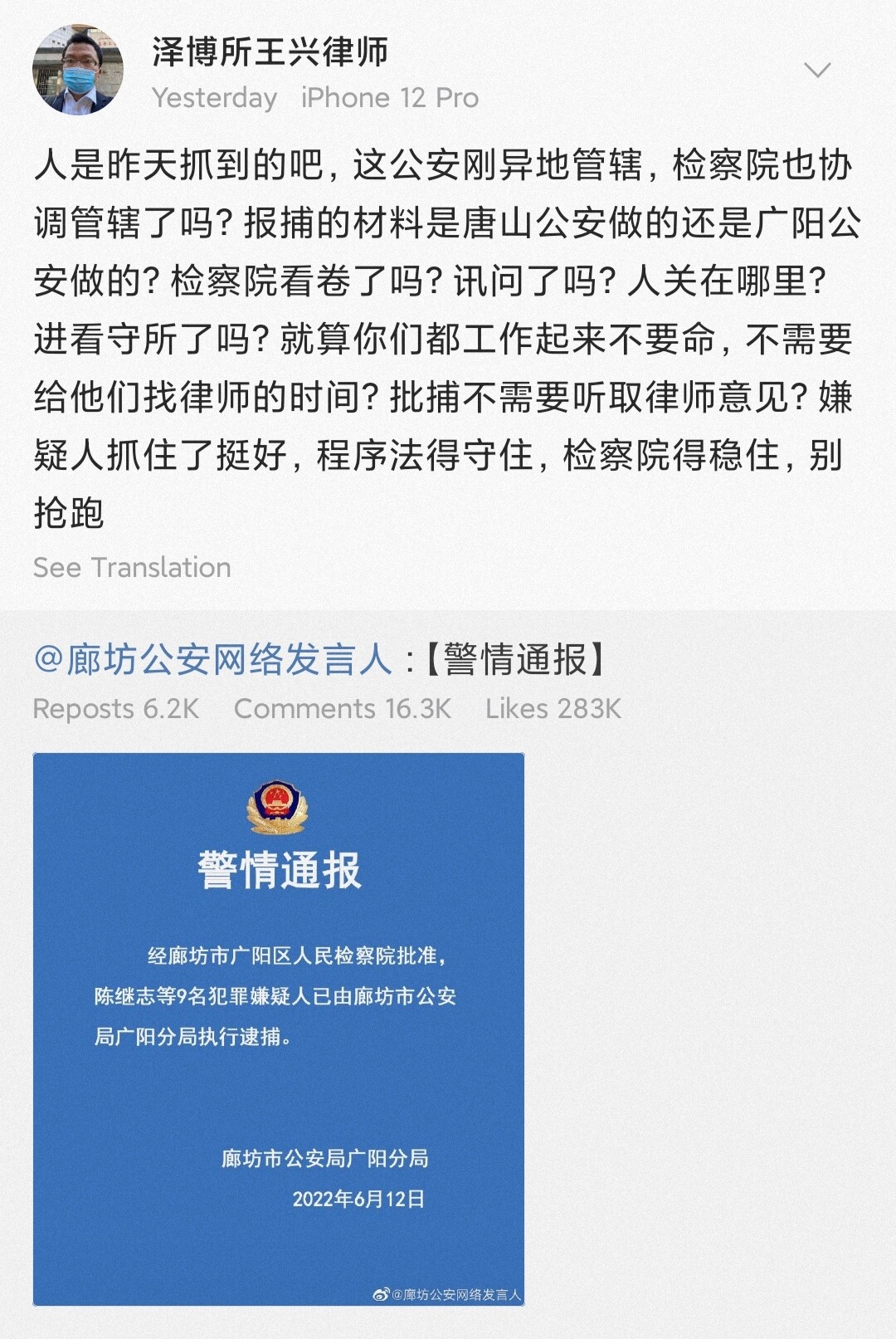 開了個會討論唐山案簡直是越說越渾身發冷,因為前幾天放假也沒怎麼追看具體細節,整半天原來一早抓了人然後私了放了,放了之後監控視頻流出來,大概沒人想過是怎麼流出來的。能掌握視頻的就兩個人,公安和店主,加上最後這事兒移交異地廊坊辦理,監控最有可能還真是警方內部流出來的,是良心發現了嗎?也不見得,唐山警察局長剛從廊坊調過來,但據說屬於被當地勢力架空,視頻流出來鬧大了再嚴打一波,下午出來跟記者說嫌疑人已經控制住的時候有人特麼已經逃到江蘇了。