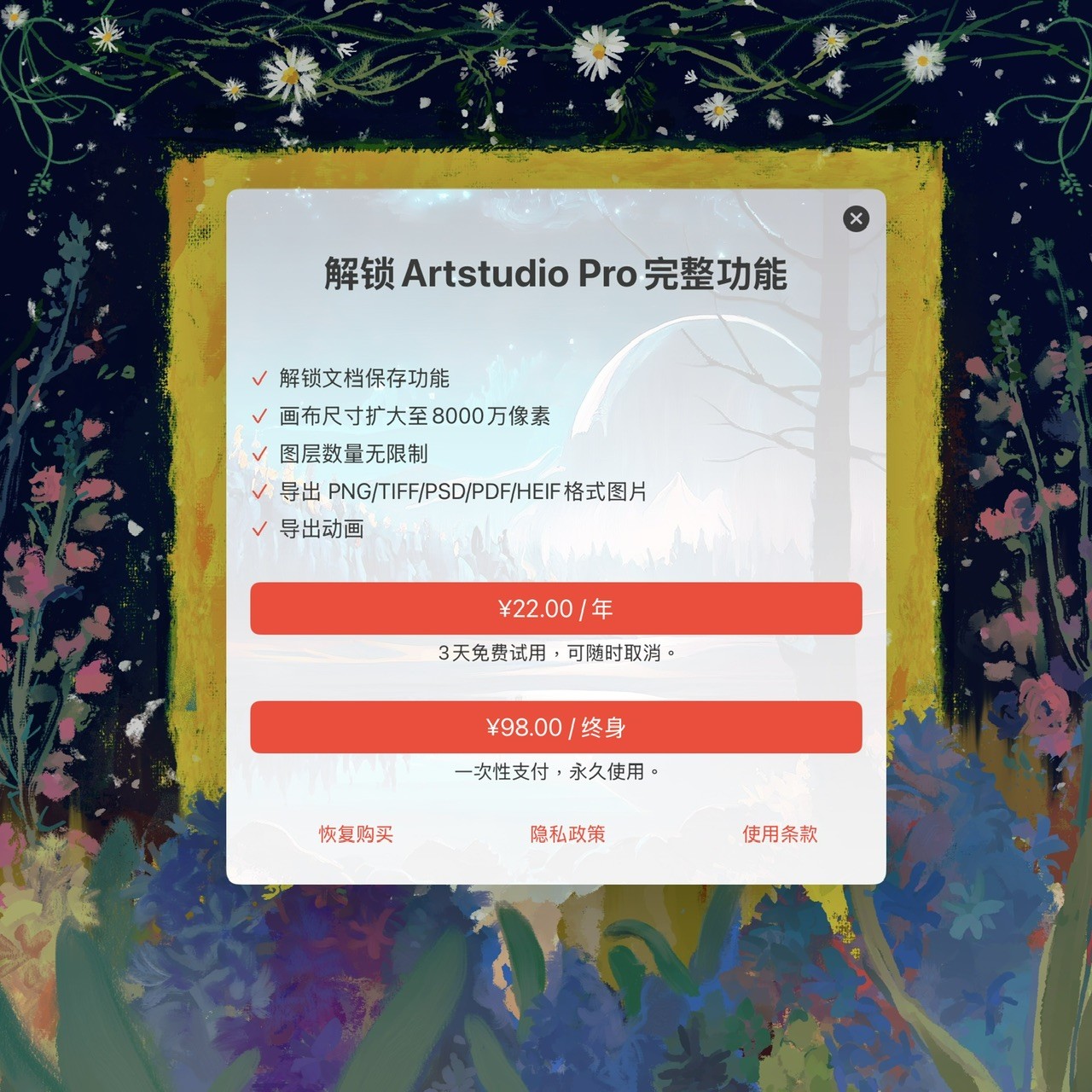 黑五打折了看看我们小众绘画软件artstudio吧盛惠98人民币(2️⃣偷的)湿颜料工具太好用了完美符合嘟主在画布调色的习惯,喜欢厚涂/半厚涂的应当会很顺手