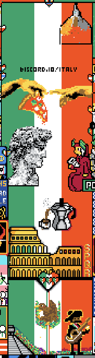 这几天一直在想自己有哪些像这样发自内心想和世界人民展示的中国元素文化符号,还真的想不出来太多……长城应该是公认的奇迹,熊猫也算是人见人爱,然后呢?竟然就开始有点卡壳了。我个人是很想写上几句名家的书法,比如王羲之《兰亭集序》的首句之类,虽然外国人看不懂,但是真的漂亮。尤其越往近现代想越少。画个姚明脸那个meme?画三个球写上"Three-Body Problem"?……另外值得一提的是日本,他们没有一处集中展示的地方,但是他们无处不在,从神奈川冲浪里到星之卡比,从星际牛仔到龙猫,从命运石之门到进击的巨人,出现在全图的各个角落,太牛逼了。