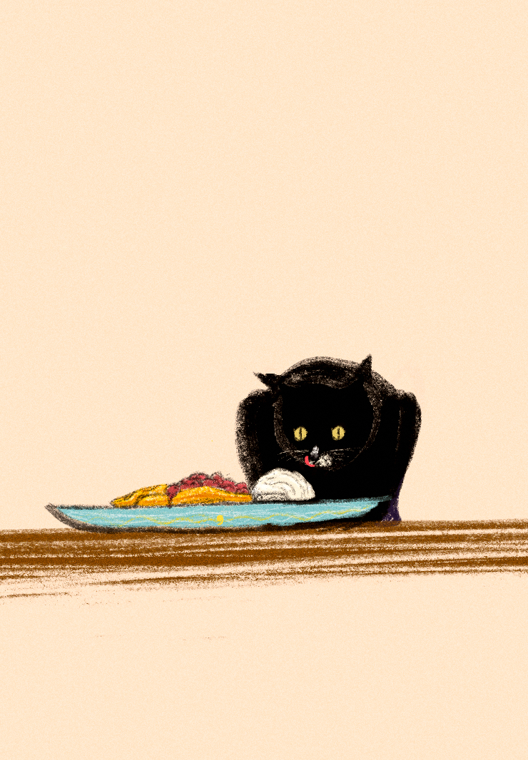 @unagi 鳗鱼点餐:被猫偷吃的 Waffeln mit heißen Kirschen und Vanilleeis