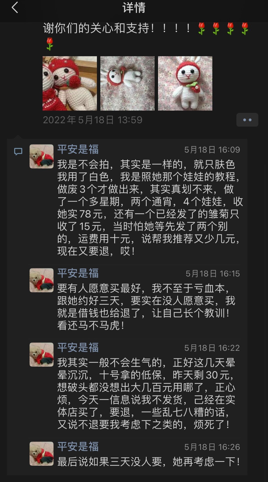 @aotuskyer 其实她这个做得是不怎么好…感觉她好像做钩织还手生?这个也确实不赚钱,划不来…