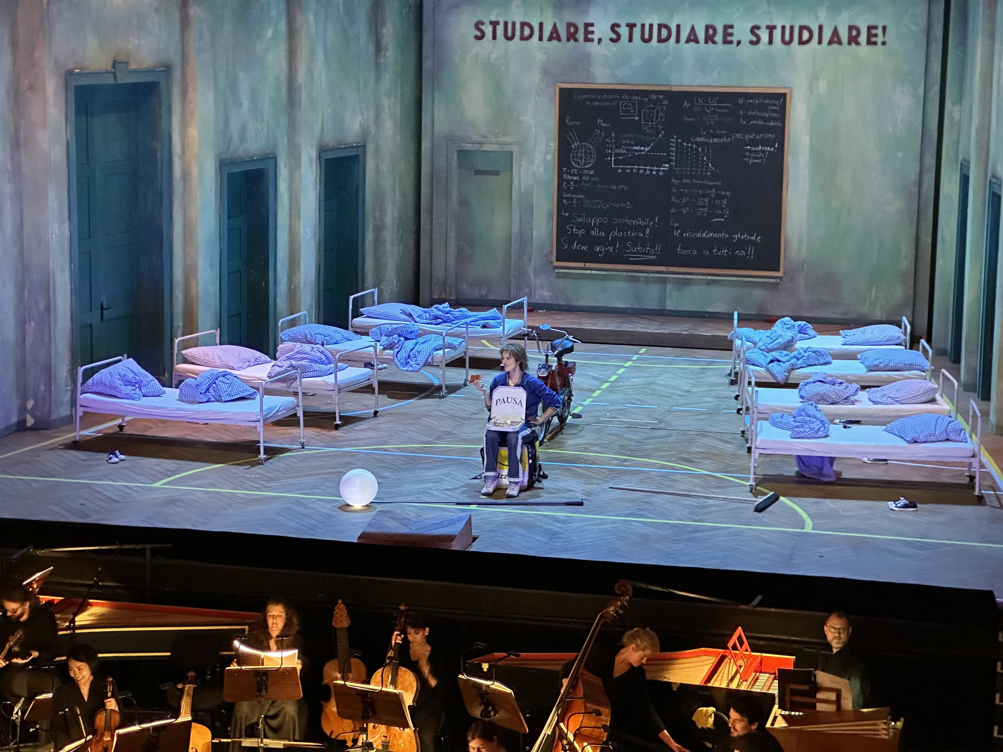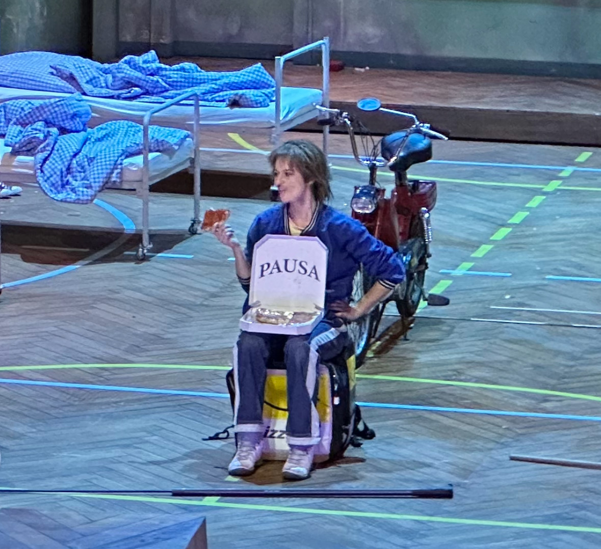 蛮喜欢歌剧导演抖一些可爱的机灵的,比如今天第一幕结尾,一个装扮成披萨外卖员的角色唱完以后,坐下打开一盒披萨,伴随着音乐的尾声开始吃,几秒钟后她抬起头,露出一副“哎呀这么多人都在我吃独食是不是不太好”的很不好意思的表情,然后把披萨盒转过来对着观众,上面写着“pausa(中场休息)” :0160: