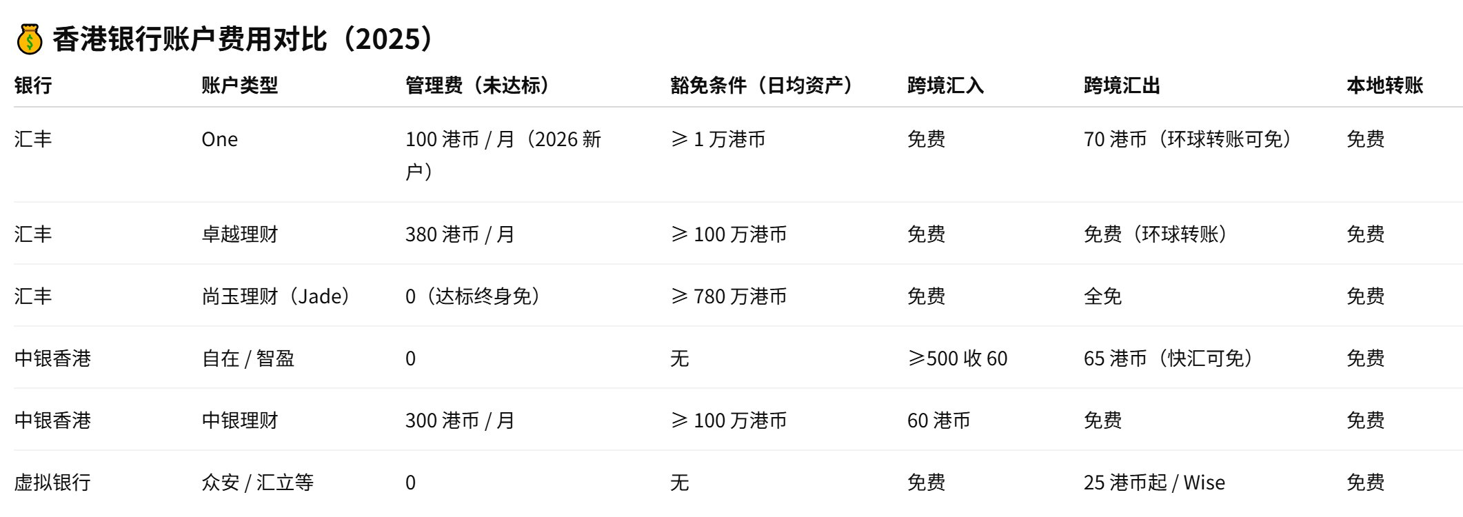 2️⃣ 香港「最省钱银行账户」对比表(图二)