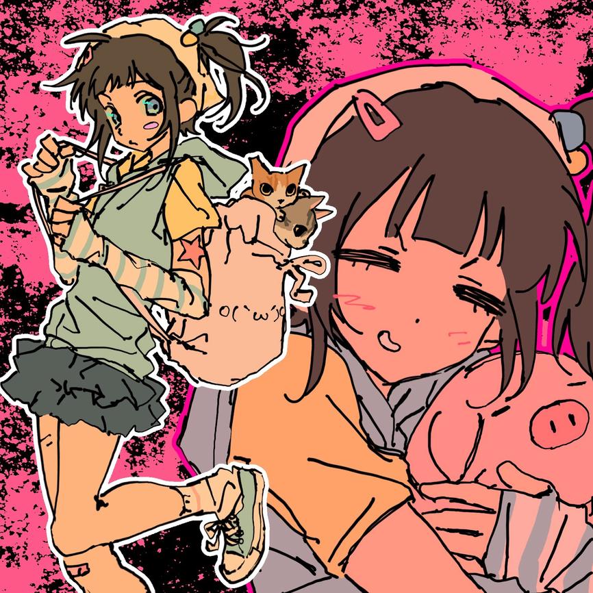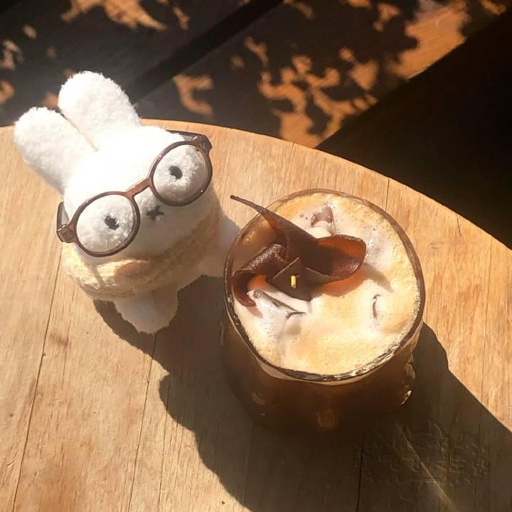 幽灵猫猫坐在蘑菇板凳上喝麦茶
