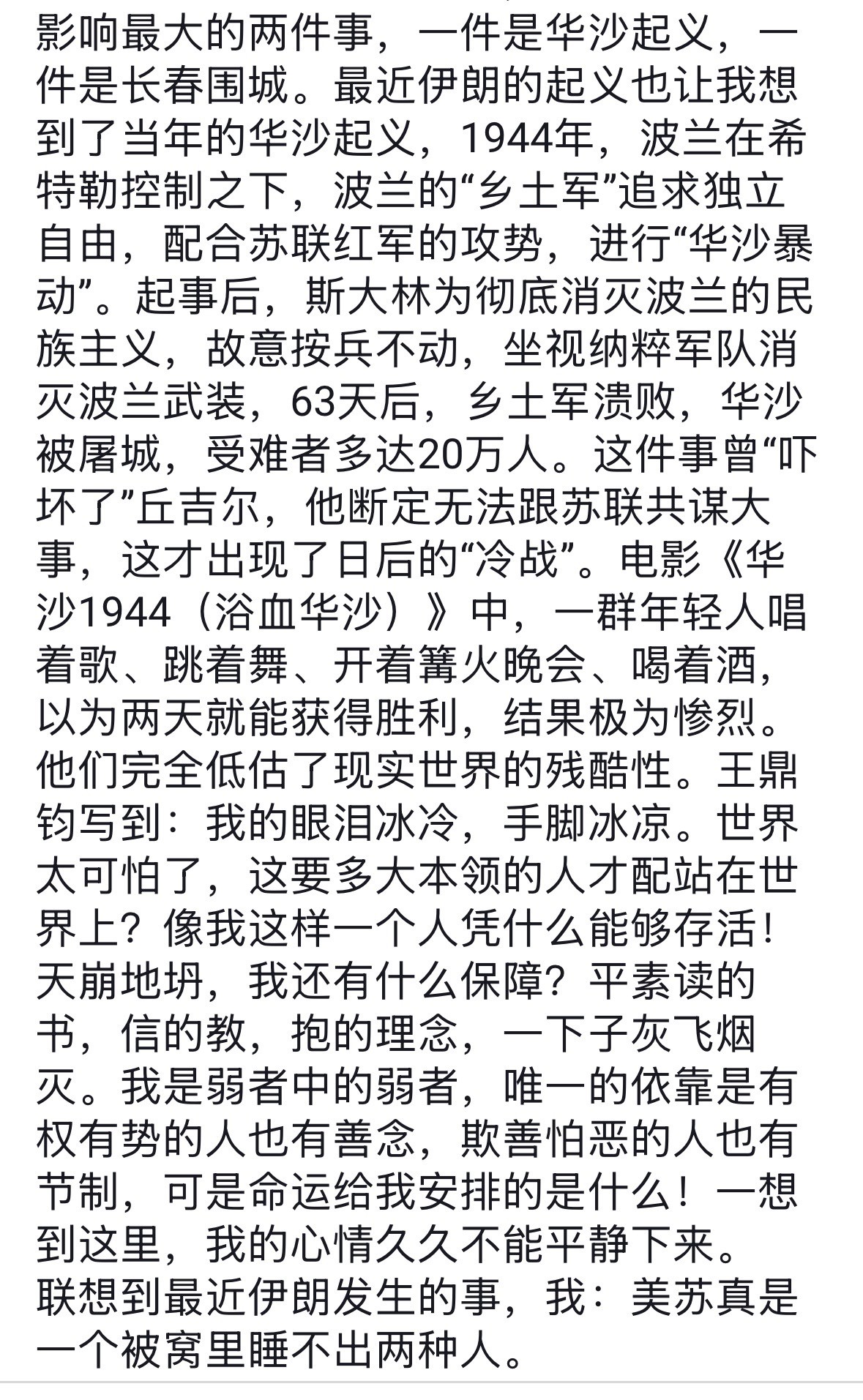 “ 一九四四年,波兰在希特勒控制之下,波兰的「乡土军」追求独立自由,配合苏联红军的攻势,进行「华沙暴动」。”